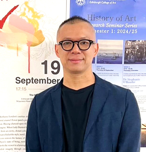 「從平面至物件,「異己國情調」從對物自身奇異的官能歡愉出發,試問那些繪畫呈現中,精緻細美的諸多圖層 (layer) 及繪畫塗層 (coating) 的平滑表面下對抗的是否是一種突兀的文化經驗?思考繪畫上的「異國情調」(exoticism) 猶如一面鏡子般充斥著取代本地化的幻想空間,脫離現實世界中物的狀態,將慾望安置在異於自己的他者 (otherness) 身份及文化,在異質空間裡共時地穿梭。
