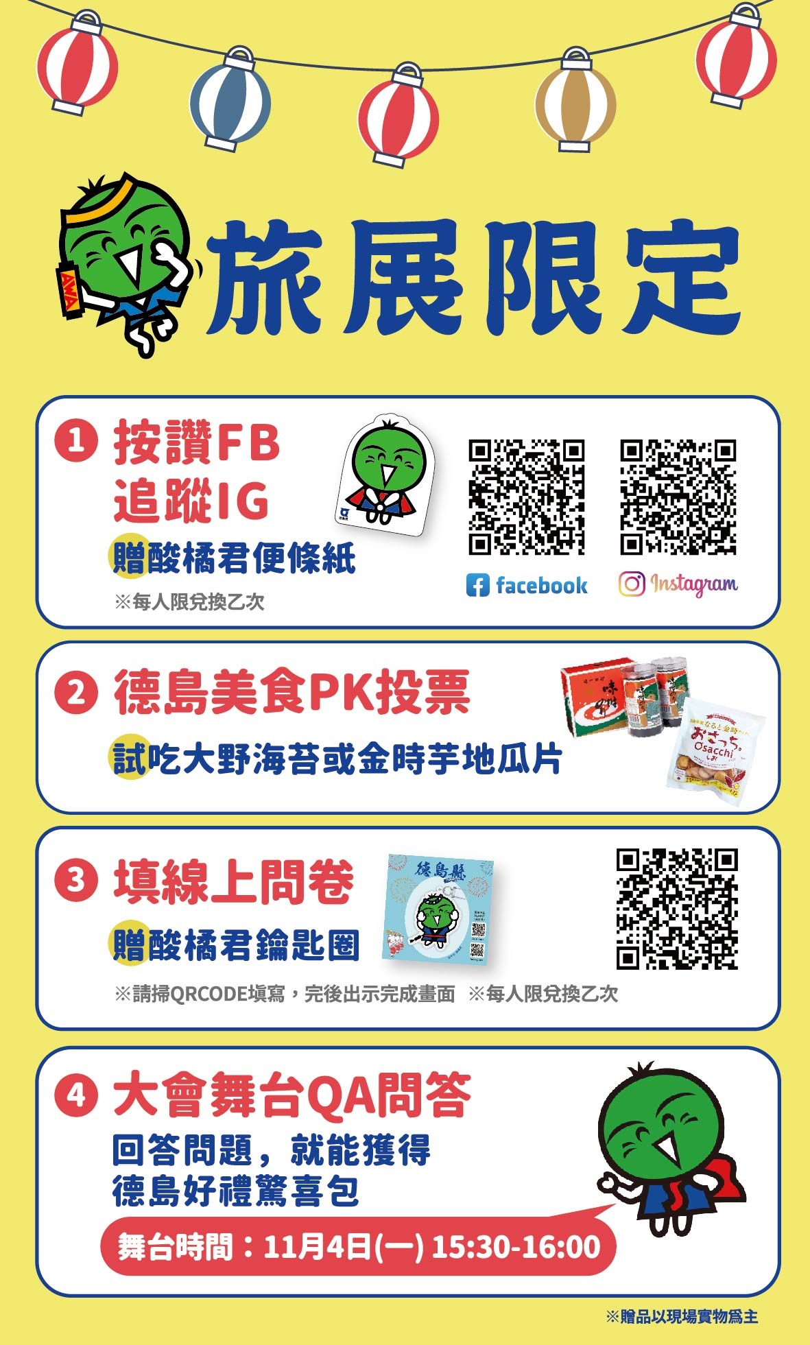 ❻與酸橘君拍照上傳至指定FB貼文→旅展結束後抽德島伴手禮