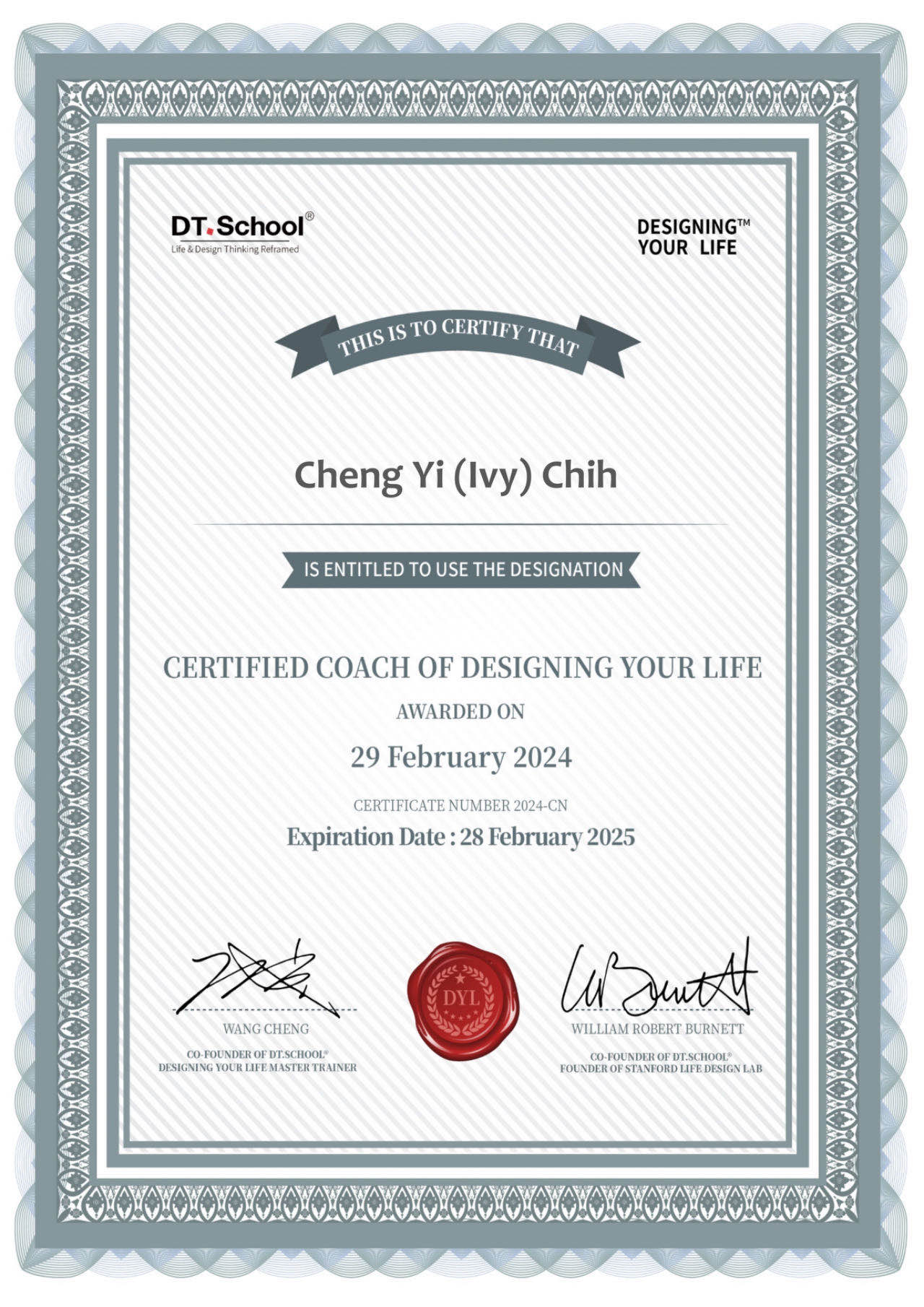 - DESIGNING YOUR LIFE TM設計人生國際認證教練 :應用設計思維、創新工具,解決人生難題,開創多元不同可能性