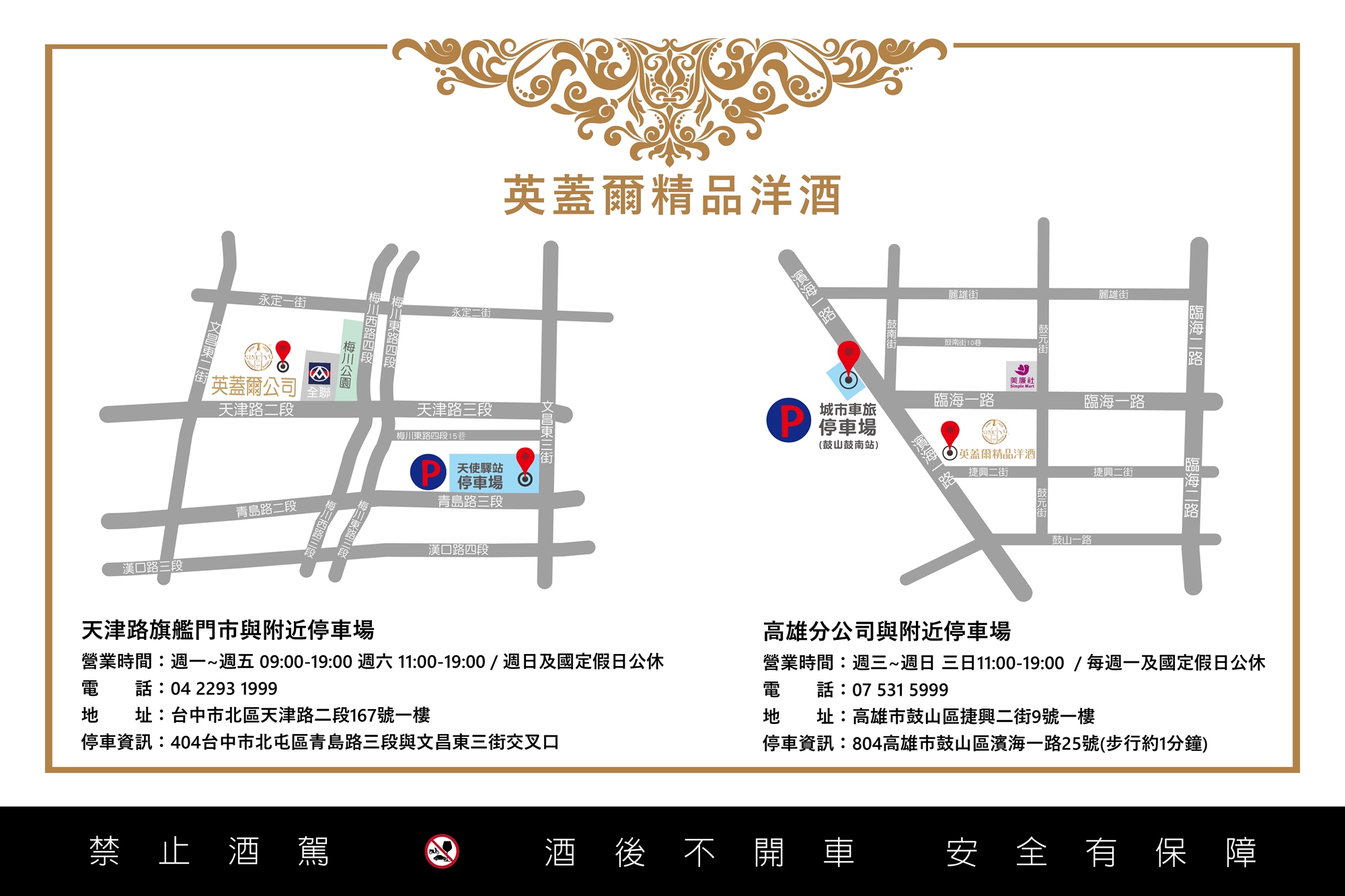 ★飲酒請勿開車,可協助代叫計程車/代駕服務。