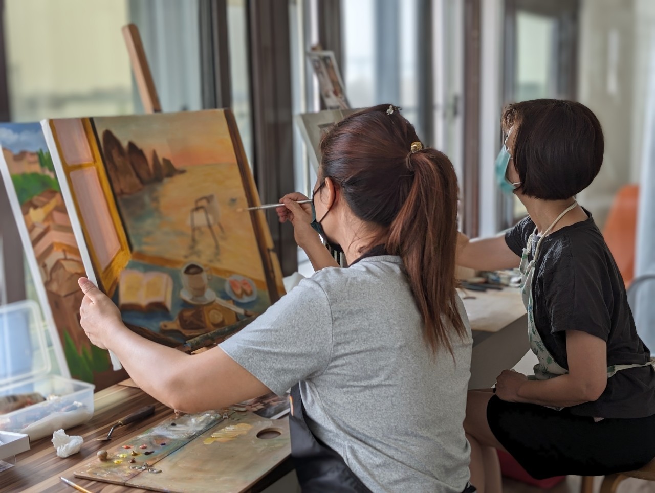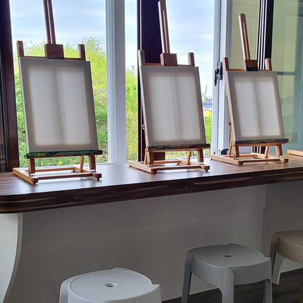 位於南高雄的海景畫室,窗邊長桌、面海露臺,選個舒適座位吧,沖杯咖啡或點一壺茶,自在地畫畫紓壓,無論寧靜的一人或相知相惜的三五好友;週三~週日的下午可以預約自助畫喔!