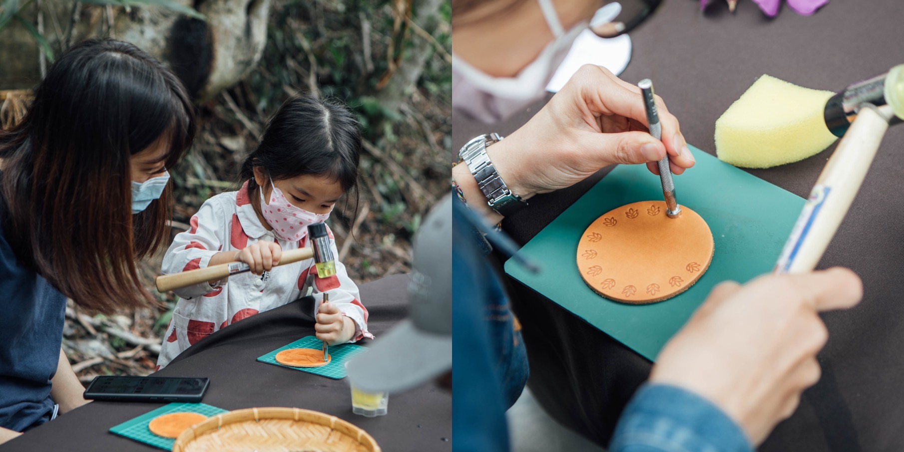 自然裡~跟著節奏律動敲打,完成專屬的皮革杯墊♡
