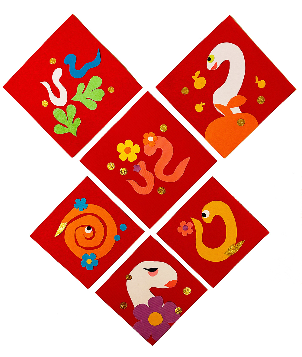 春聯也可以用剪的,紅包袋貼上小巧圖案,討長輩歡心,今年農曆年顯得喜氣洋洋格外有特色!彩紙拼貼運用剪貼與色彩搭配技巧,無論是彩色、紅色與金色互相輝映,大方體面貼在家門口,氣象更新迎接新的一年!