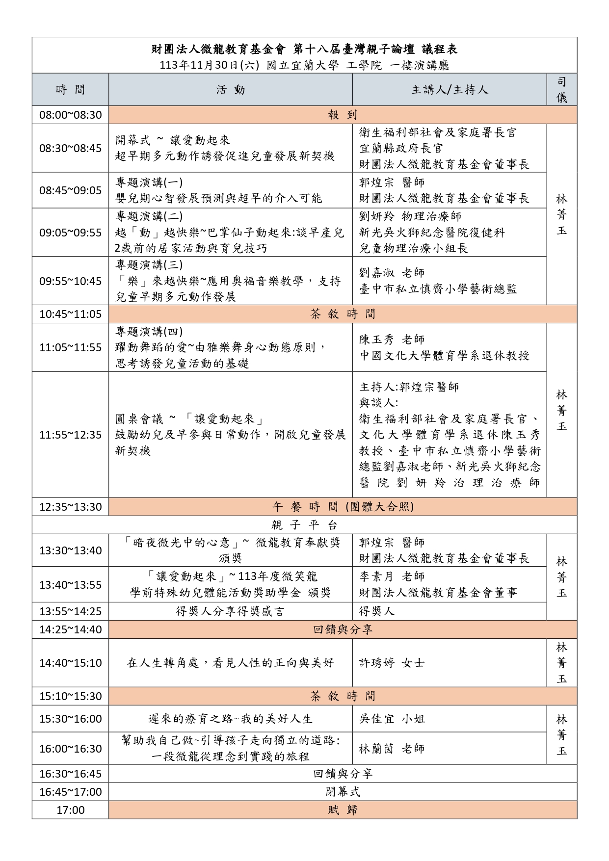 第十八屆臺灣親子論壇 <讓愛動起來> 超早期多元動作誘發,促進兒童發展新契機