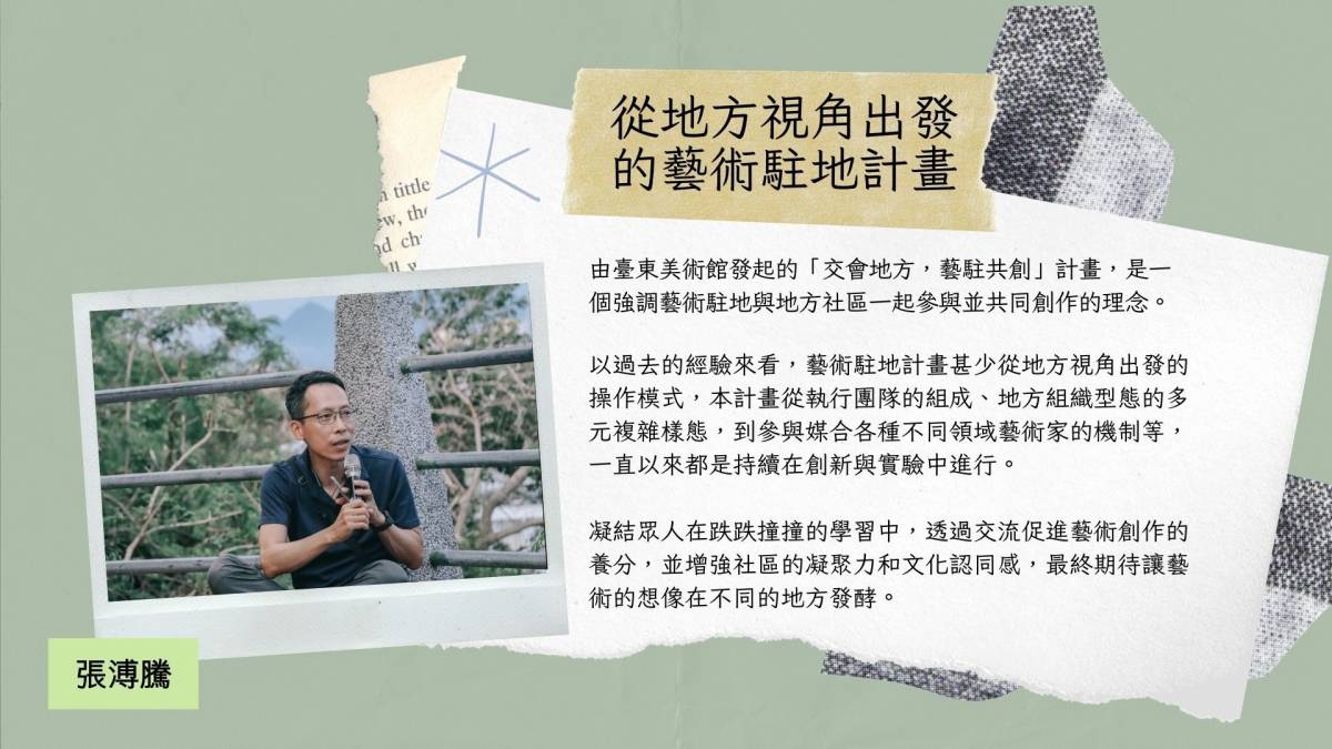 10:10-10:30 | 主題分享 | 從地方視角出發的藝術駐地計畫 | 張溥騰 |
