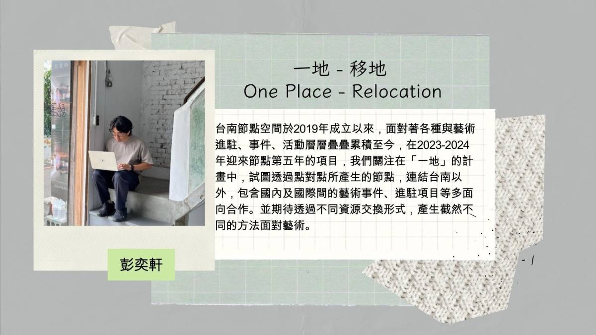 10:50-11:20 | 一地 - 移地 | One Place - Relocation | 彭奕軒 | |