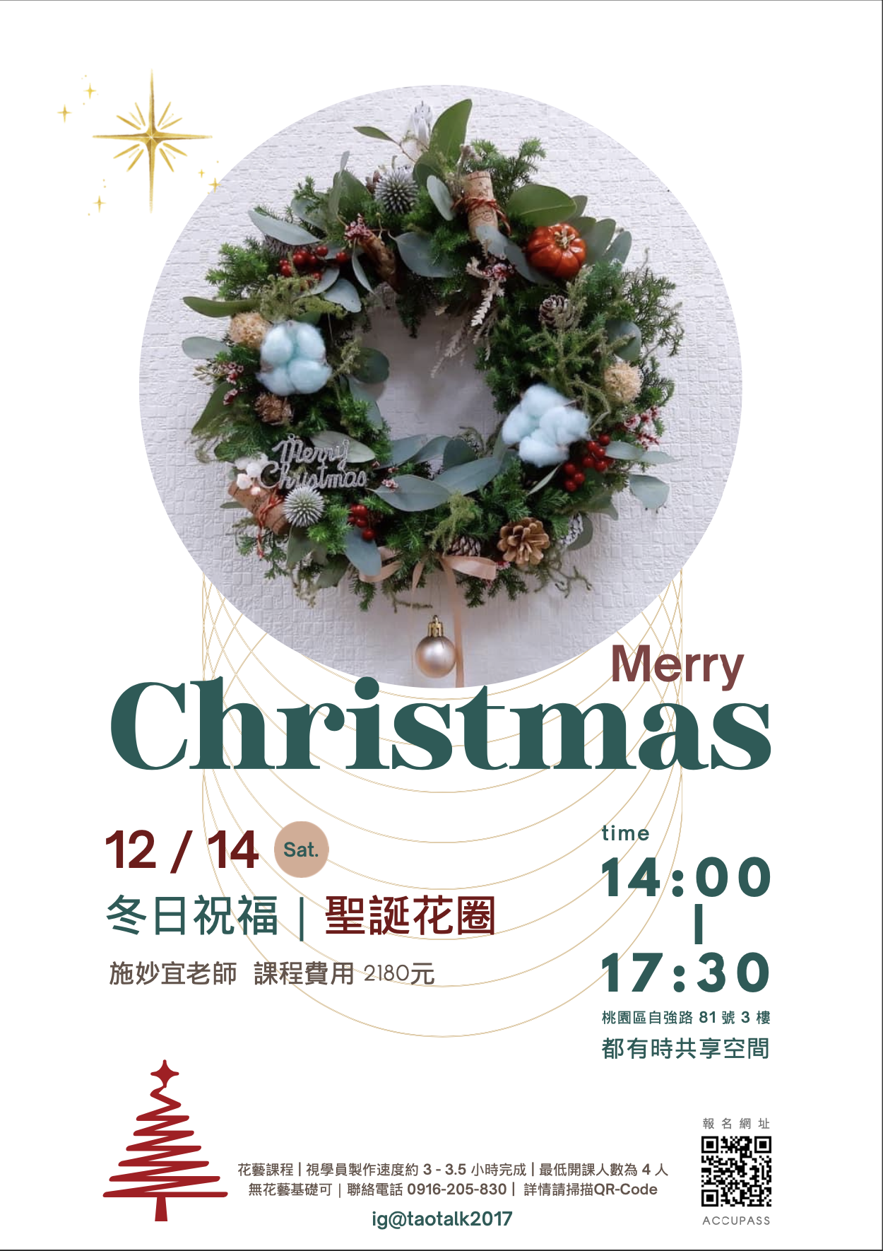 - 課程當日花材依當季花材為主,花圈可乾燥長期存放