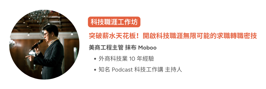 🎯 求職轉職秘訣大公開|知名 Podcast「科技工作講」主持人 Moboo 抹布,現場分享科技業求職轉職履歷準備、面試與談薪水密技!