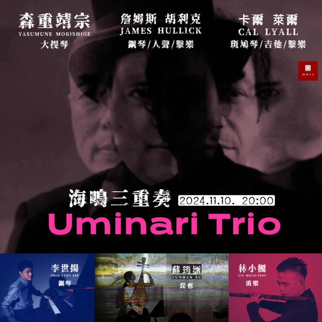 本週日,迷幻即興實驗三重奏Uminari Trio將作客林舍文化,與台灣即興音樂家李世揚、林小楓、蘇筠涵攜手,共同打造一場獨特的6人音樂對話,帶領觀眾進入一個充滿驚奇與探索的聲音世界!本場演出融合迷幻氛圍與實驗音色元素,在空間中描繪出未知的聲音領域,邀您前來一同沈浸於瞬息萬變的聲音旅程!