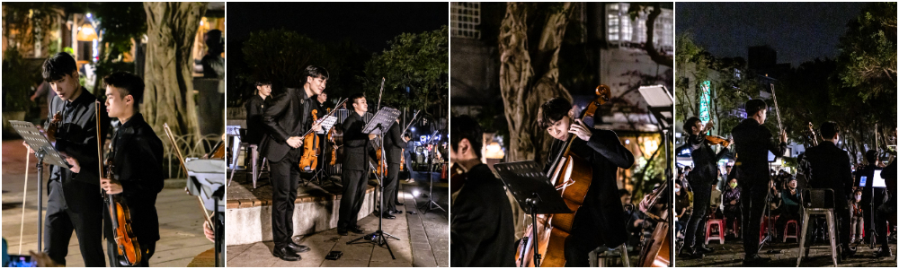 三三兩兩席地而坐,聆聽弦樂合奏的樂音,輕輕喚醒心中的愛樂魂。