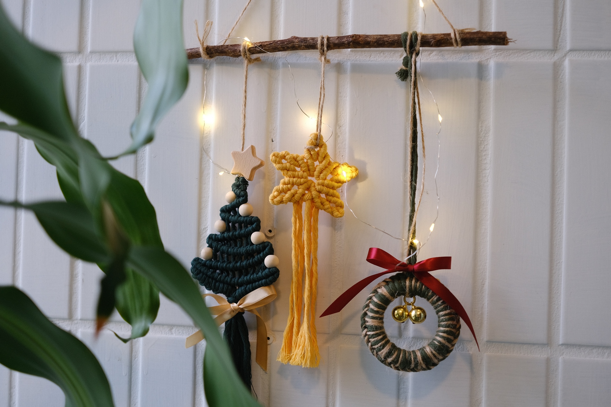 |課程成品|樹枝吊飾3入組,聖誕樹、星星、花圈,讓家裡變小聖誕村!