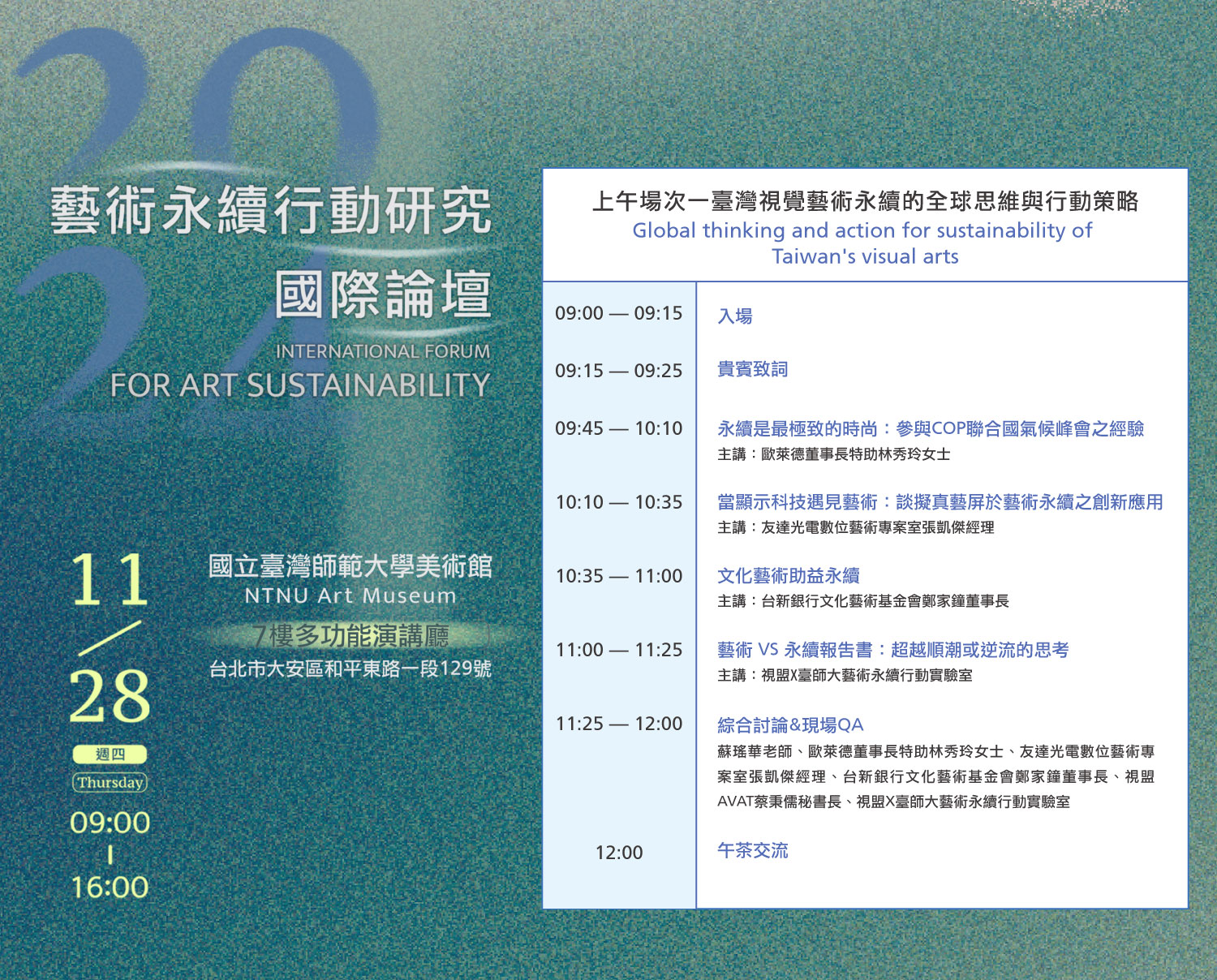 ▌主題 ▌臺灣視覺藝術永續的全球思維與行動策略 “Global thinking and action for sustainability of Taiwan’s visual arts ”