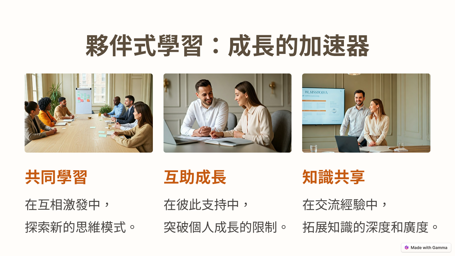 聚說說書會以『夥伴式學習』為核心,萃取上百場說書會精華,打造陪伴式跟書系統,讓你兩個月成就輸入到輸出,成為有質感的知識分享者。
