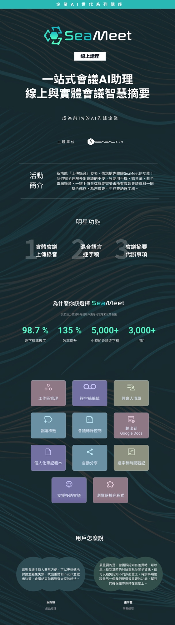 SeaMeet AI:一站式會議AI助理,線上與實體會議智慧摘要