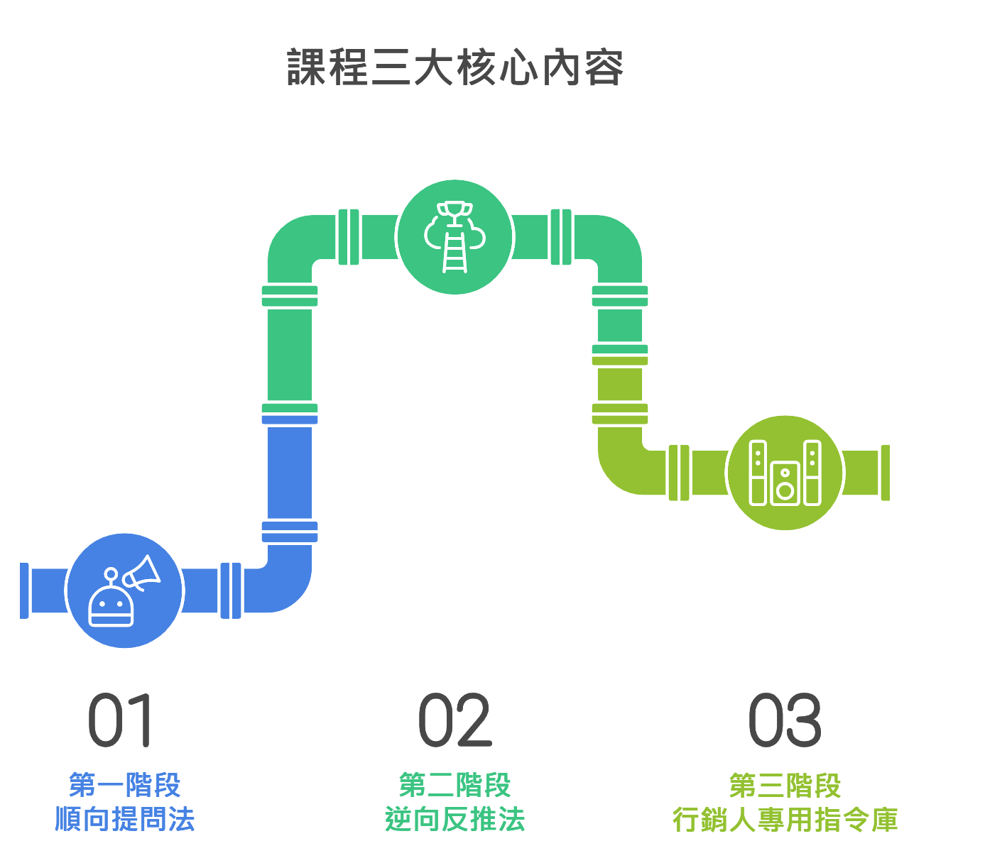 透過三大核心,你不再只是學會使用 AI,而是徹底掌握與 AI 合作的關鍵,真正讓 AI 成為你的行銷利器。