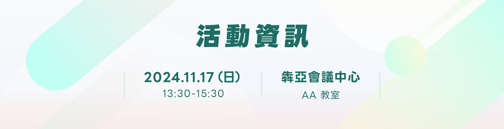 ✦ 活動地點:犇亞會議中心 - AA 教室