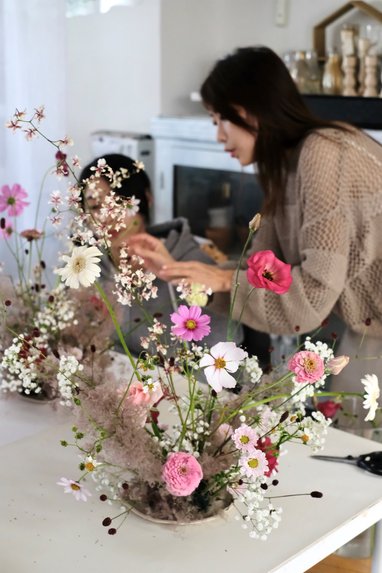 除了訂製花禮,活動佈置,更喜歡以花藝教學連結溫度,同為愛花人齊聚一室,藉由觀察植物分享各自生活與人生經歷而連結更多美的事物,每每課程結束都收益良多。