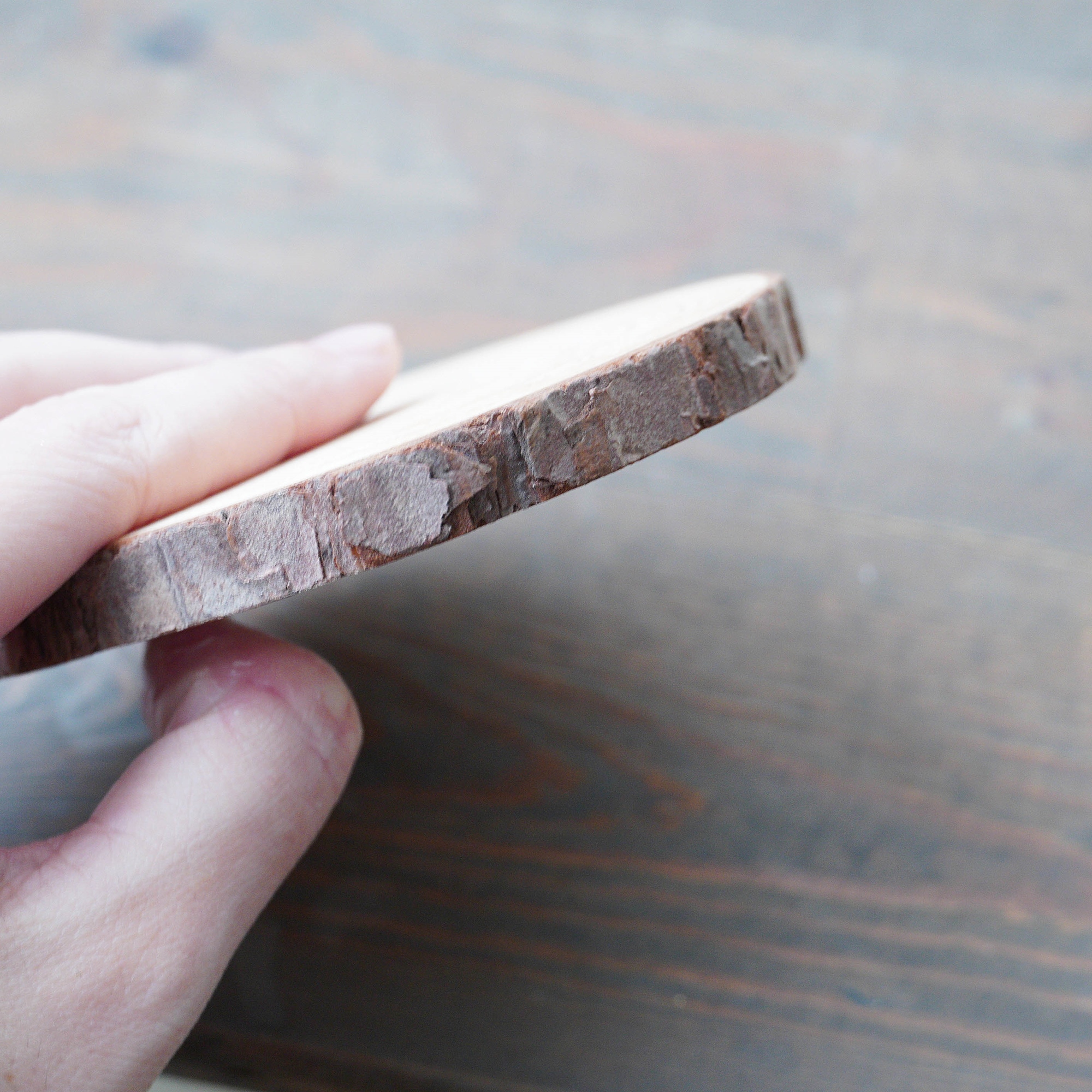(尺寸直徑約9-10cm,厚度約1cm,為天然木片多少會有紋路及顏色深淺不一)
