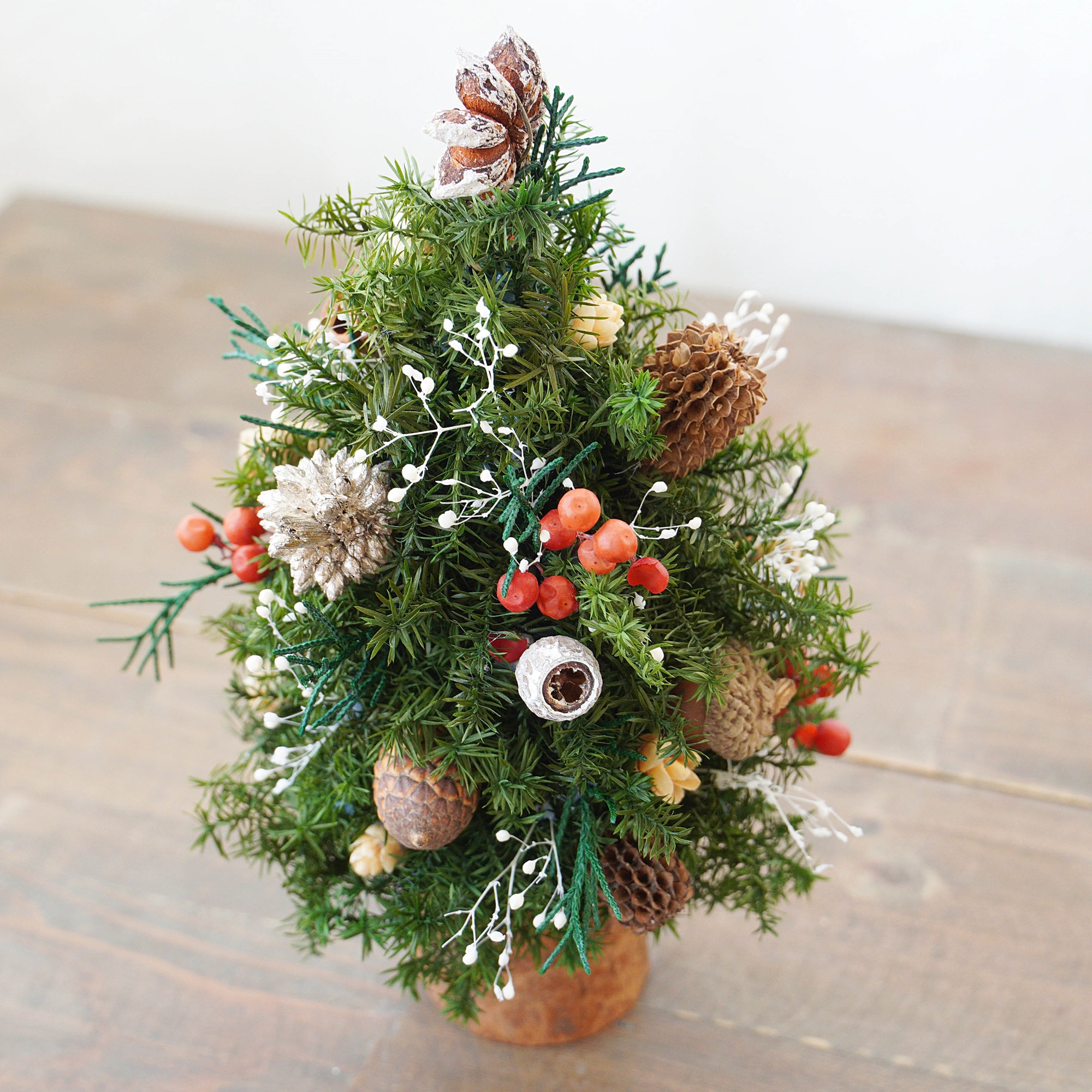 (註:聖誕樹為花藝老師製作,每一棵長相都不相同,完美主義者請特別注意!)