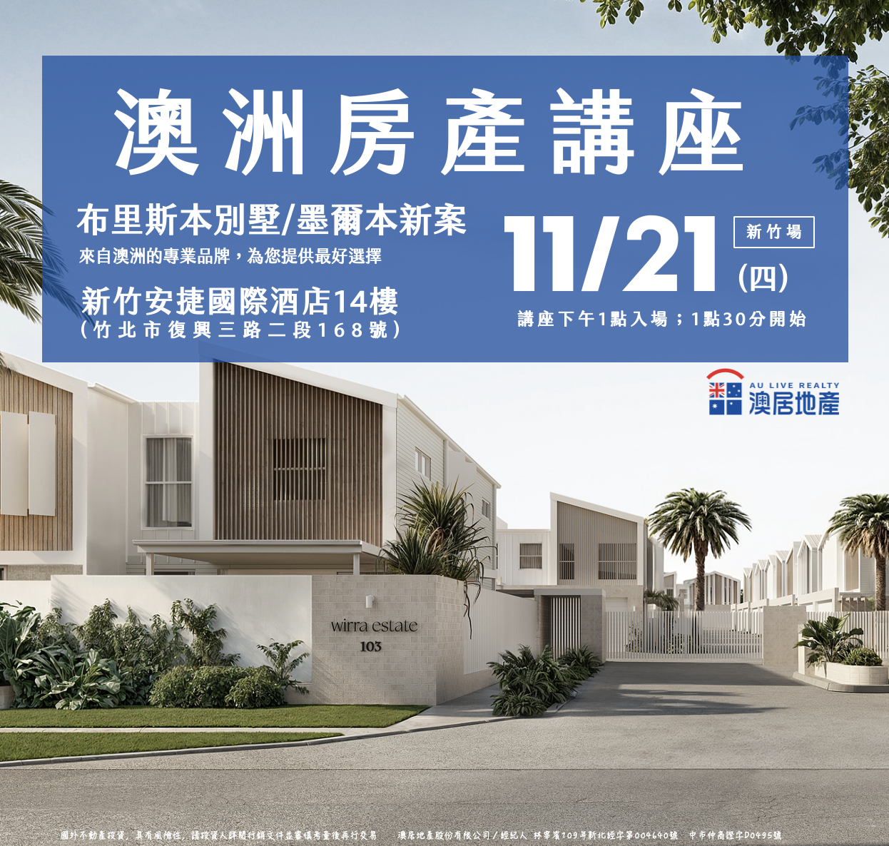 國外不動產投資,具有風險性,請投資人詳閱行銷文件並審慎考量後再行交易 澳居地產股份有限公司/經紀人 林宰賓113年新北經字第004640號/中市仲商證字D0495號