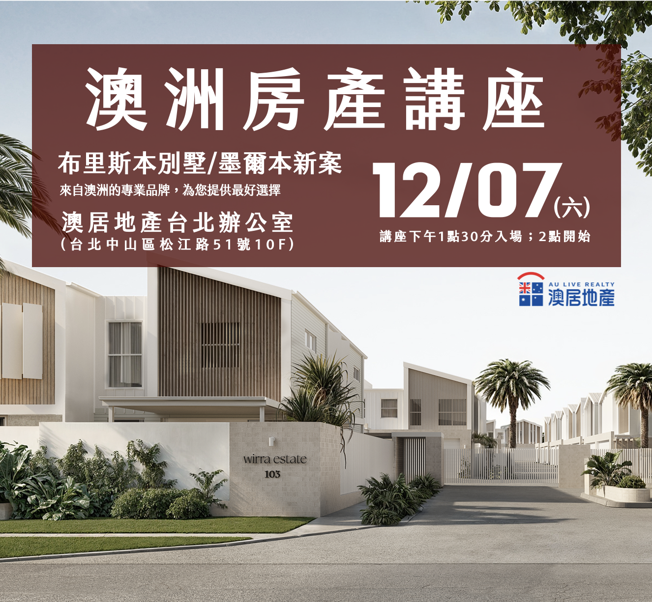 講座地點:澳居地產台北大會議室(台北市中山區松江路51號10樓)