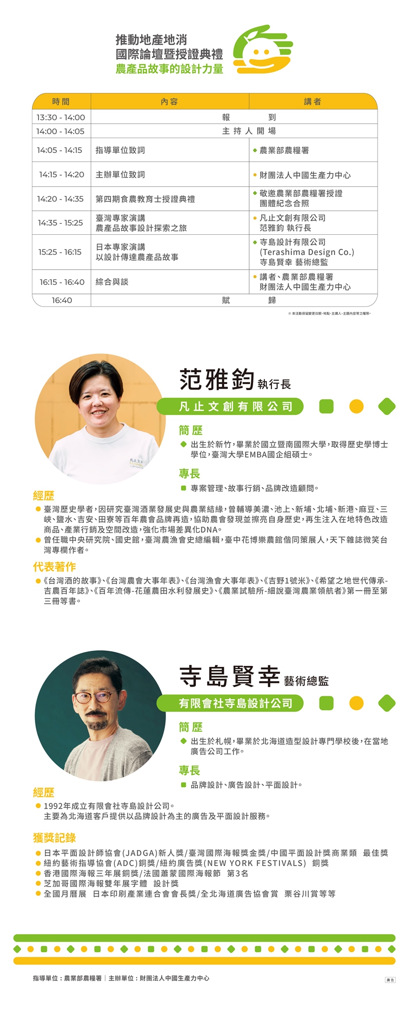 本場國際論壇邀請兩位🔥重量級🔥臺/日專家 帶來農產設計的精采分享✨✨✨