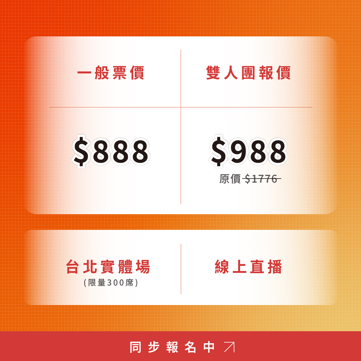 *此為【線上直播場】報名頁,如欲報名【台北實體場】請至 此活動頁 購買