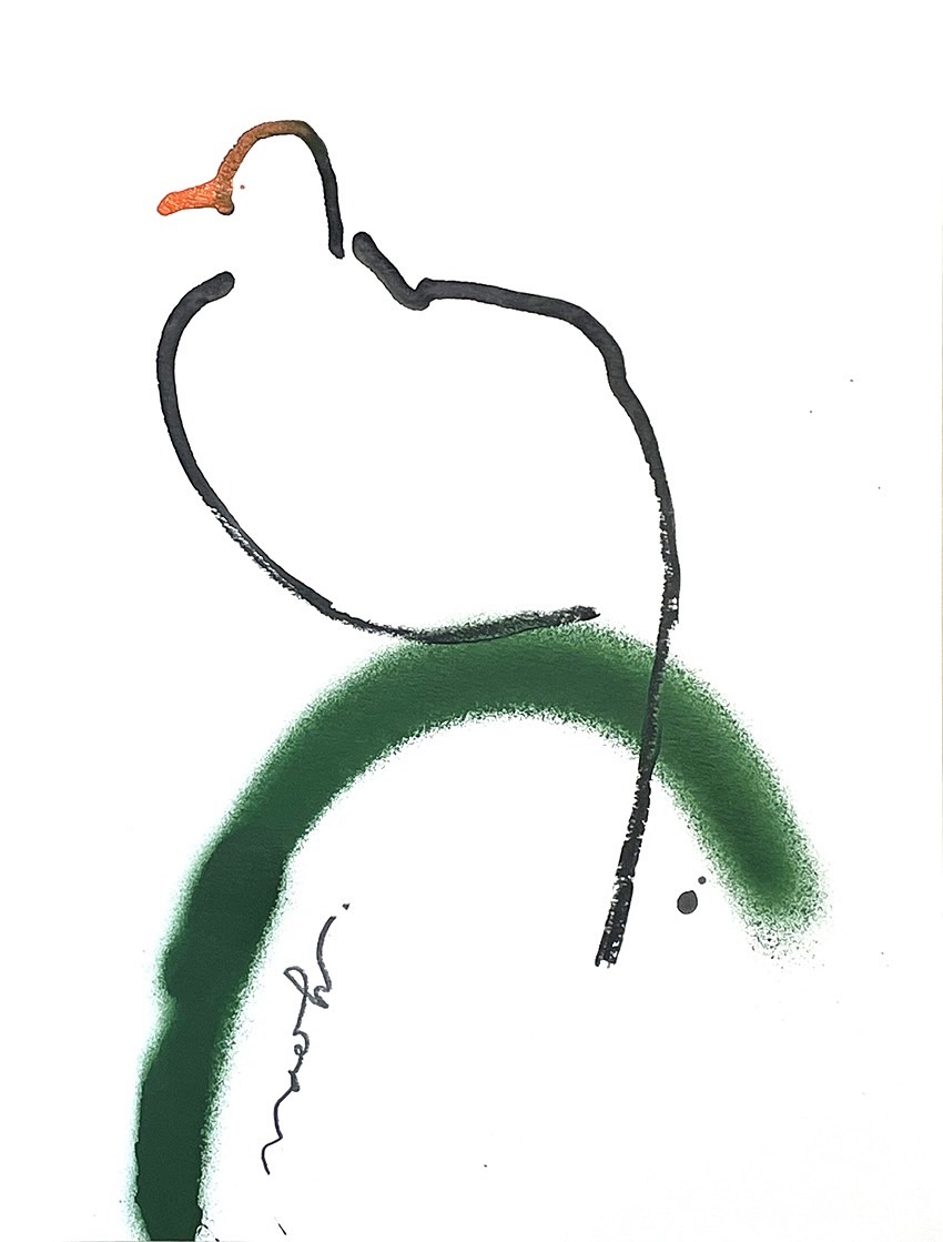 她在創作時,會將自己置身於不受干擾的時間與空間中,一心不亂地一直畫一直畫,進入忘我的境地。彷彿成為一張潔淨的白紙,聆聽內在的聲音,將無形化為有形,不假思索地筆起筆落間,純粹、自然、律動的線條隨之顯現,聚精會神地將創作能量一次迸發。