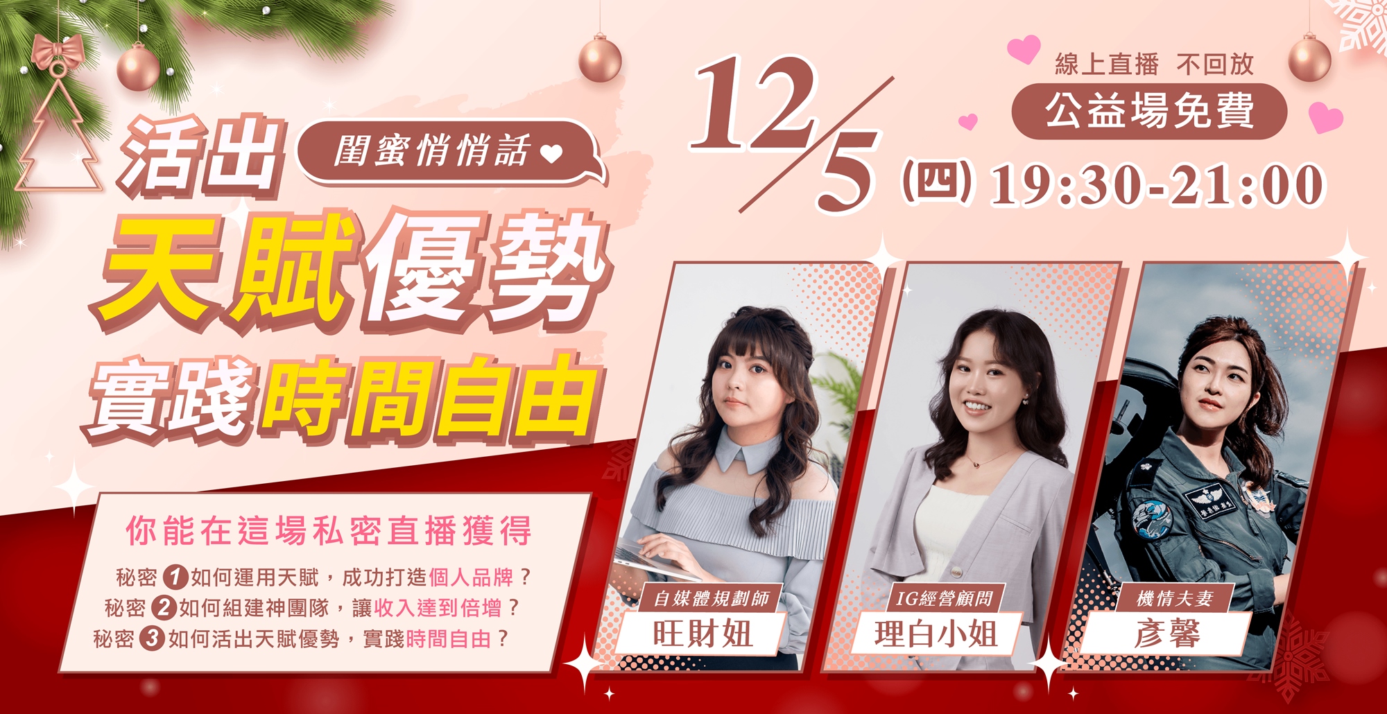 我們三位閨蜜將在 12/5 晚上7點30 一起線上直播分享