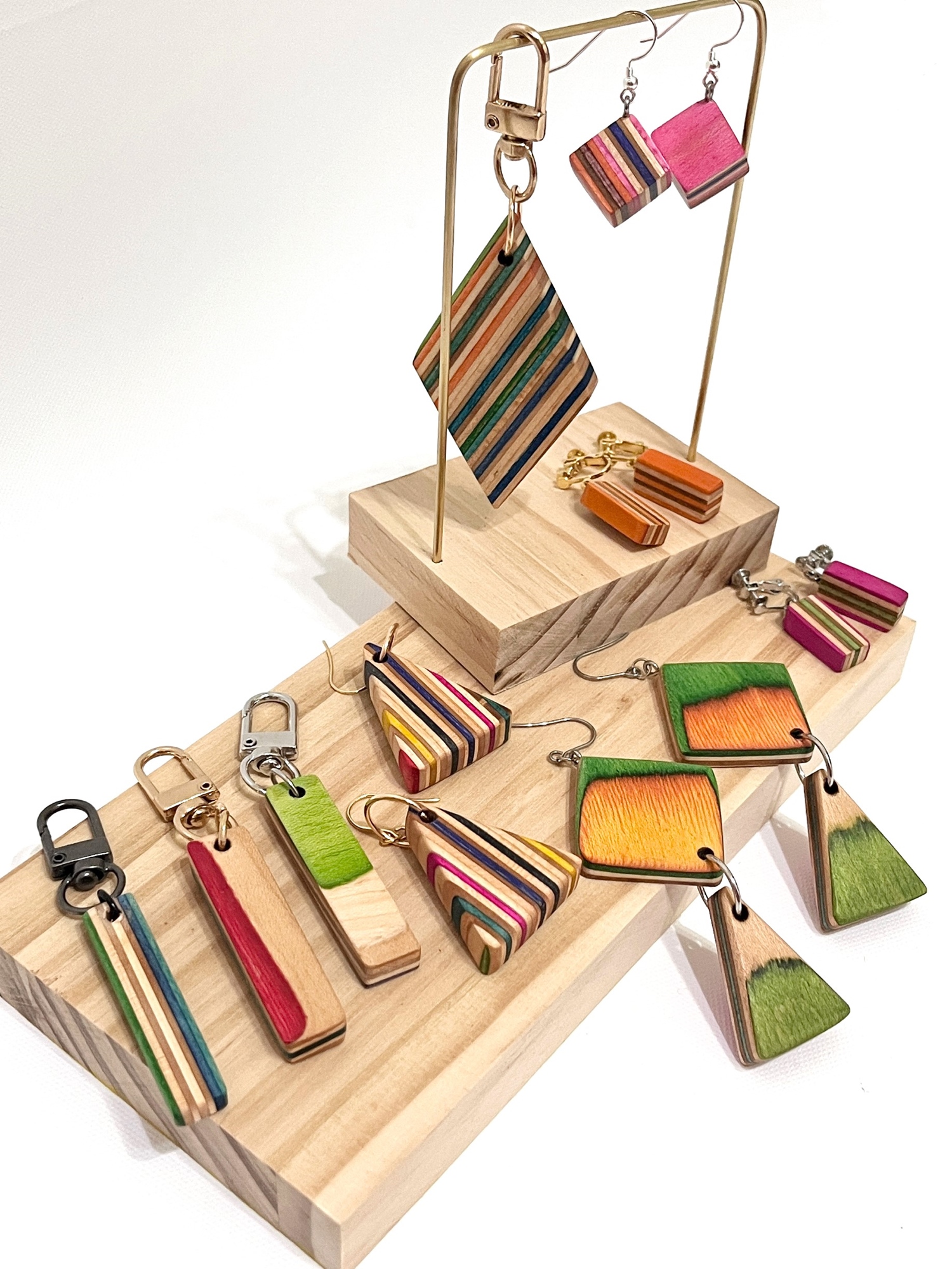 這次課程將帶領大家運用再製的滑板楓木,製作獨特幾何風格的耳環或鑰匙圈。