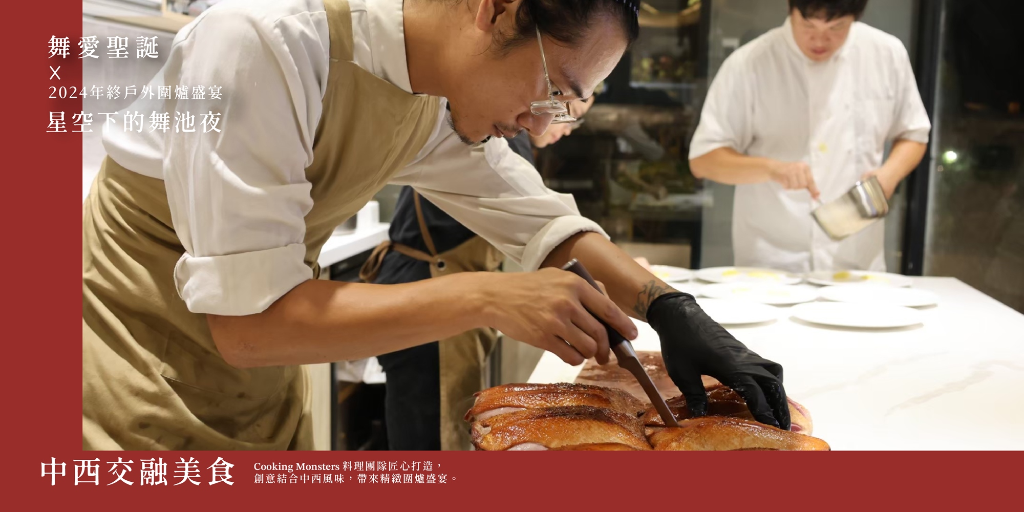與親朋好友圍坐,細細品味這些用心製作的美食,每一道菜都是一段故事,傳遞著Cooking Monsters團隊對食材、料理、與團聚的熱愛。在這片星光閃爍的夜晚,盡情享受這份中西合璧的餐桌魅力,讓溫馨與美味成為您這個聖誕夜最美好的回憶。