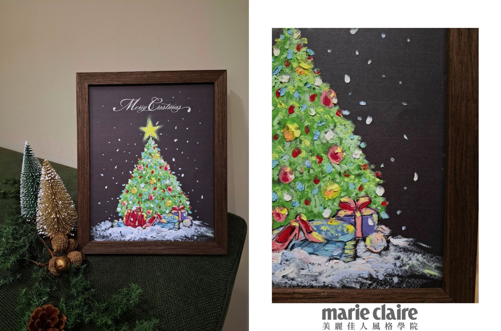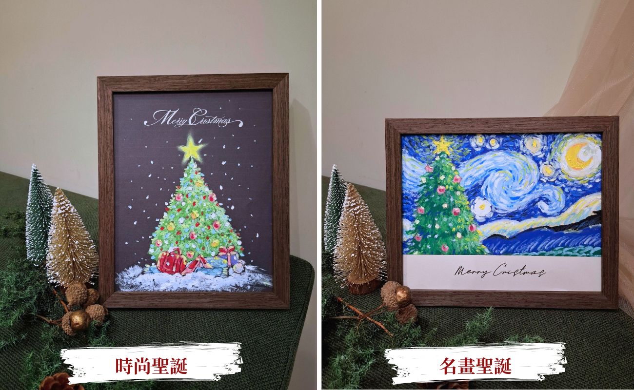 完成品尺寸:時尚聖誕 約28×23 公分;名畫聖誕 約28×23 公分(均含框)