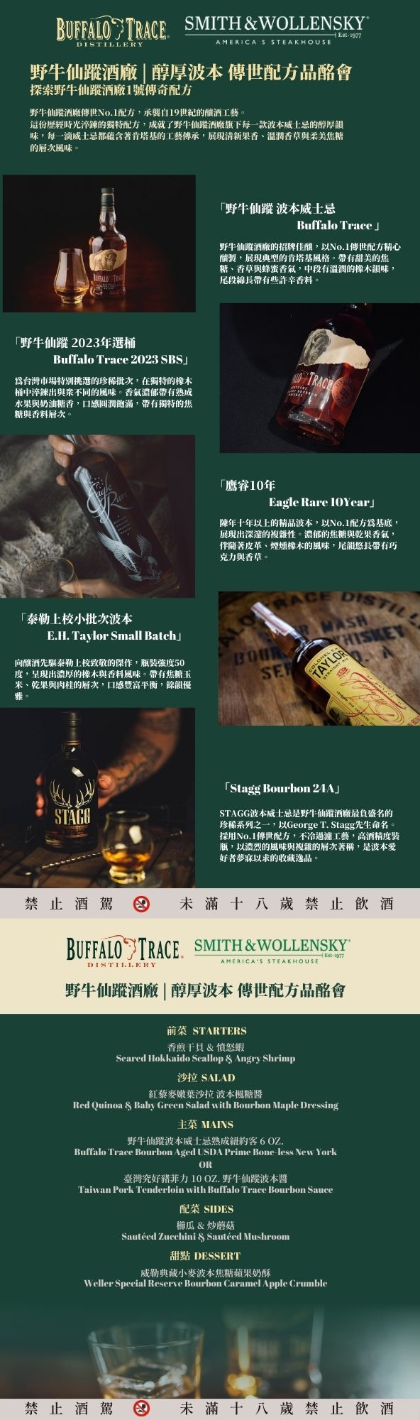 4. 活動中提供的品鑑酒款,野牛仙蹤波本威士忌嗨棒將提供續杯一次,其他酒款將不提供續杯。