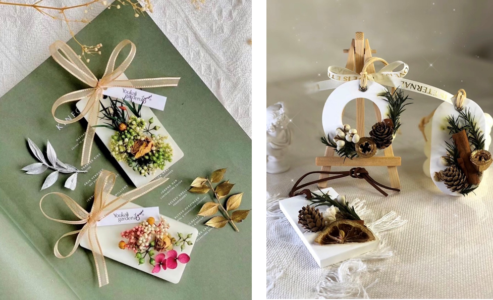 親手製作兩片不同造型的擴香石,細膩地選擇茶香、搭配乾燥花材,讓每一片作品都成為獨特的存在。將這份專屬的茶香帶回家,隨時感受茶香散發的寧靜與愉悅。