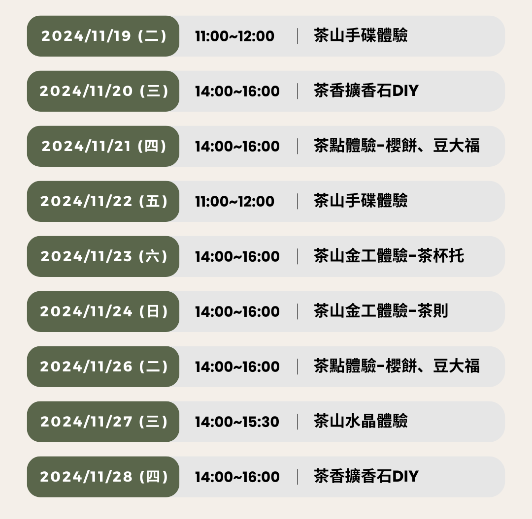 - 活動日期:11月19日 (六) —11月28日 (四)