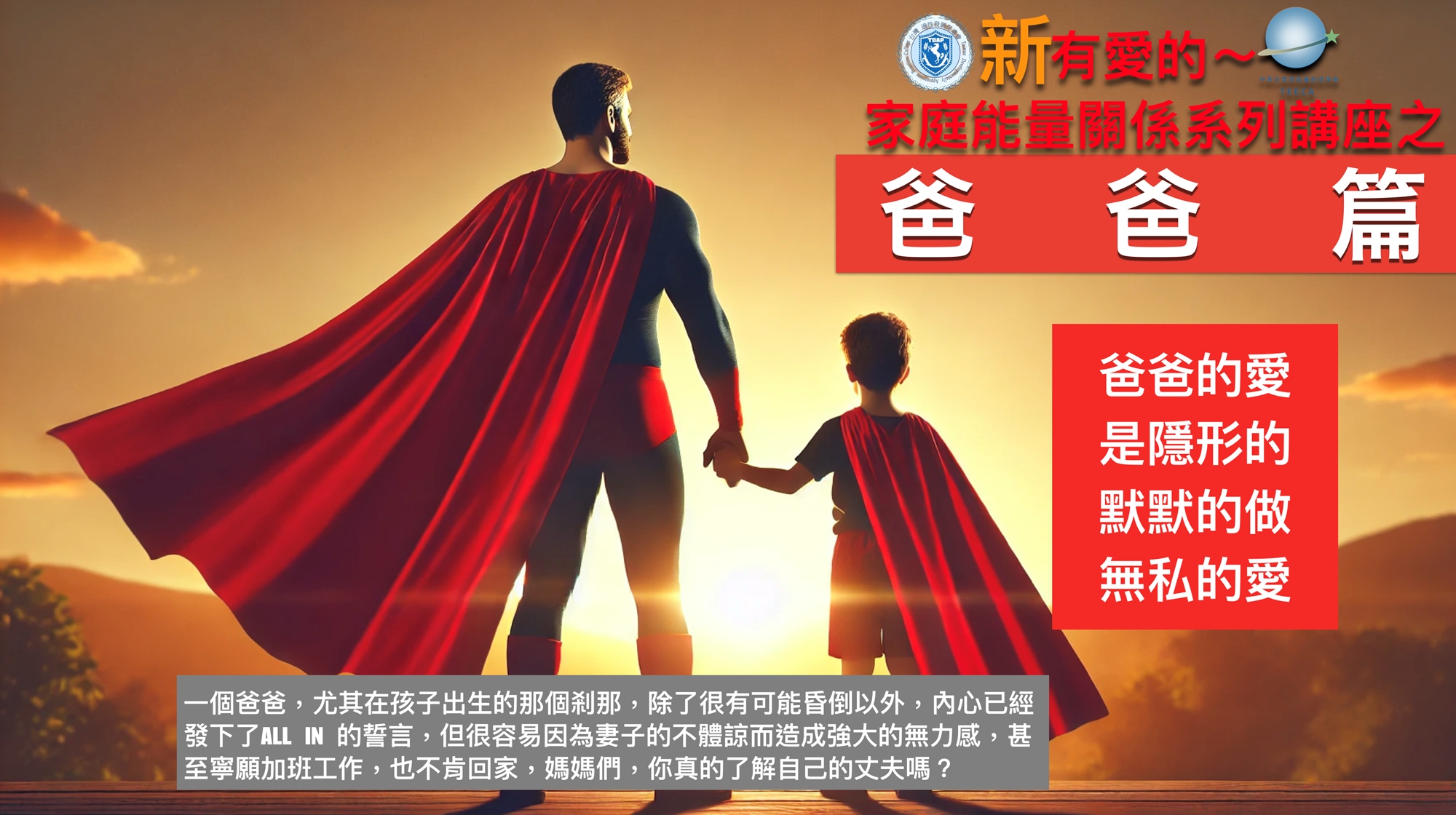 本次講座涵蓋婚姻、親子、個人成長等多個面向,著重在啟動家庭愛的能量,創造和諧美滿的家庭生活。