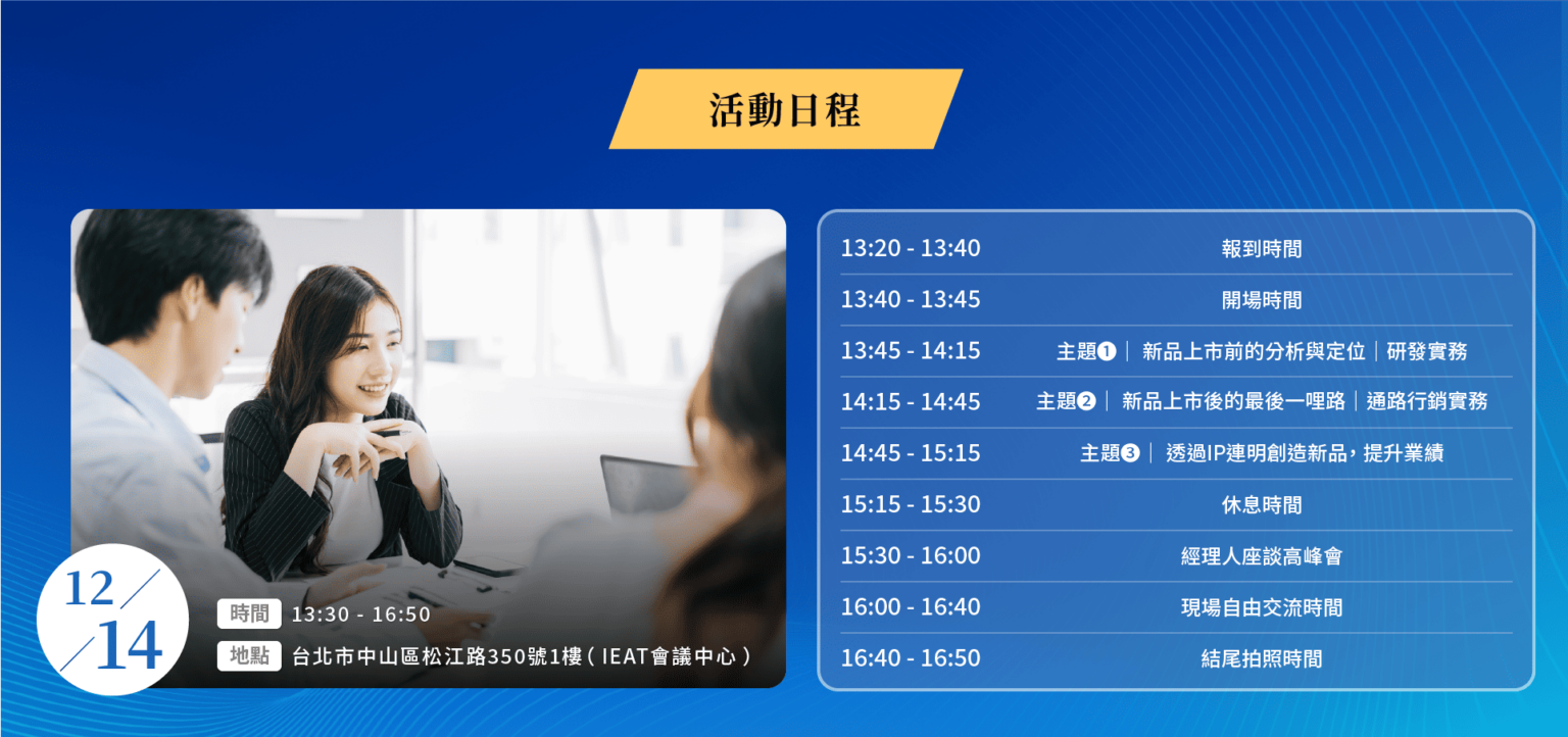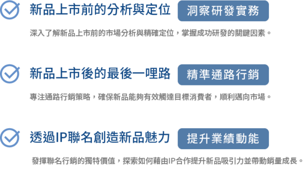 每位講師將結合自身豐富的實務經驗,分享從新品開發到上市後的行銷心法,內容涵蓋: