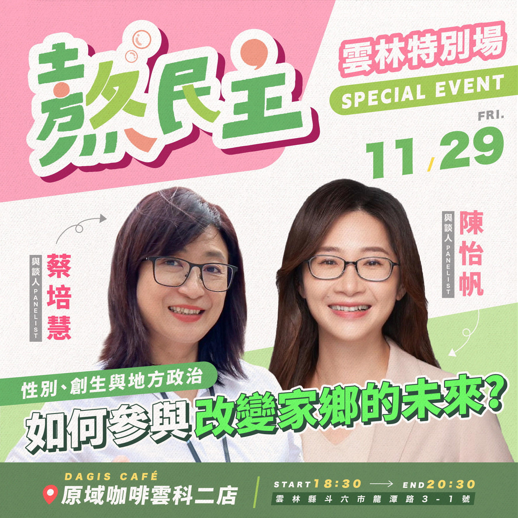 活動與談人|蔡培慧(前立法委員、國立暨南大學副教授)、陳怡帆(行政院雲嘉南區聯合服務中心副執行長)