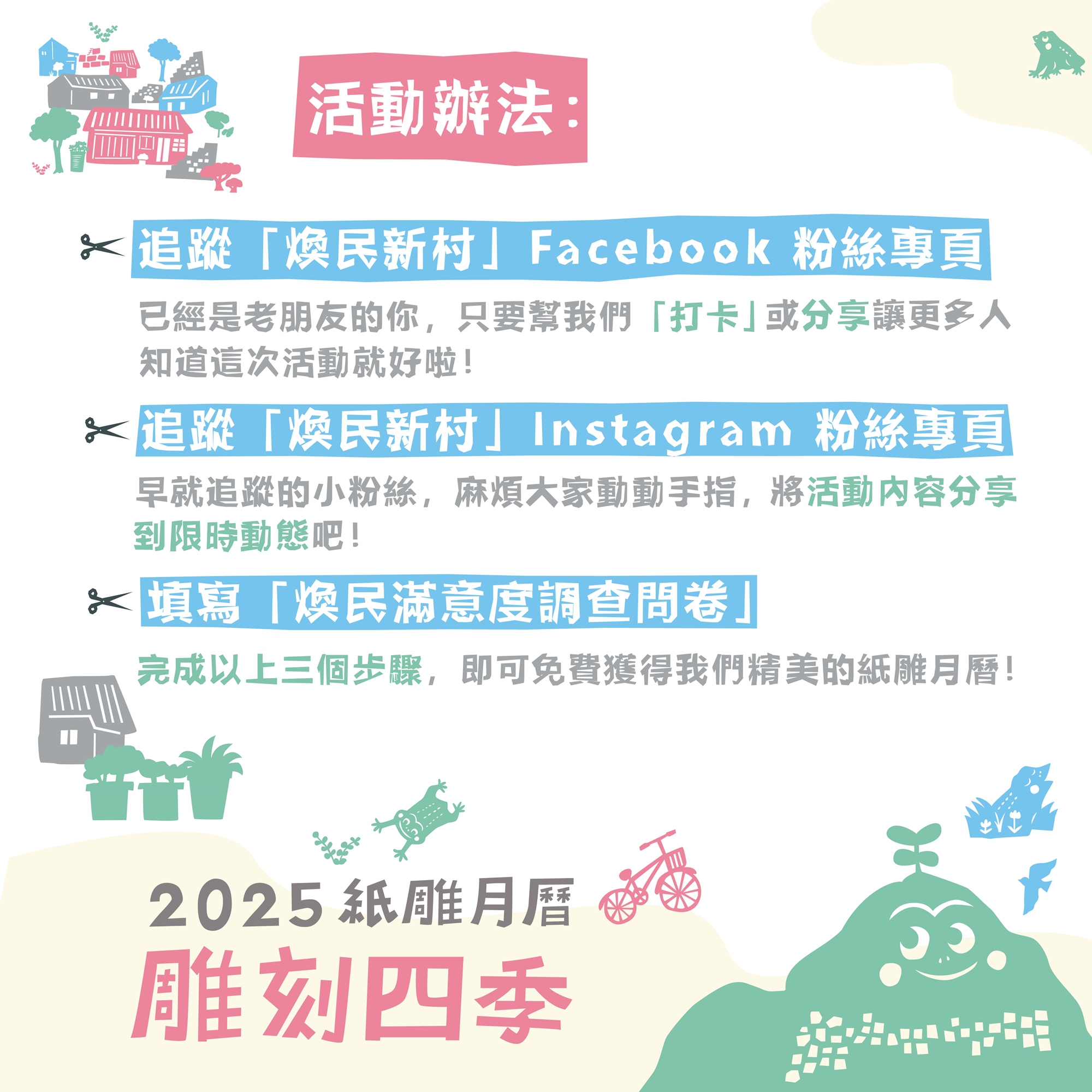 「✂️雕刻四季-2025紙雕月曆DIY📆」來啦!帶著滿滿的祝福和驚喜,這本月曆的靈感源自煥民新村的蟾蜍山 —— 一個神秘又浪漫的地方,彷彿童話的入口。🌄