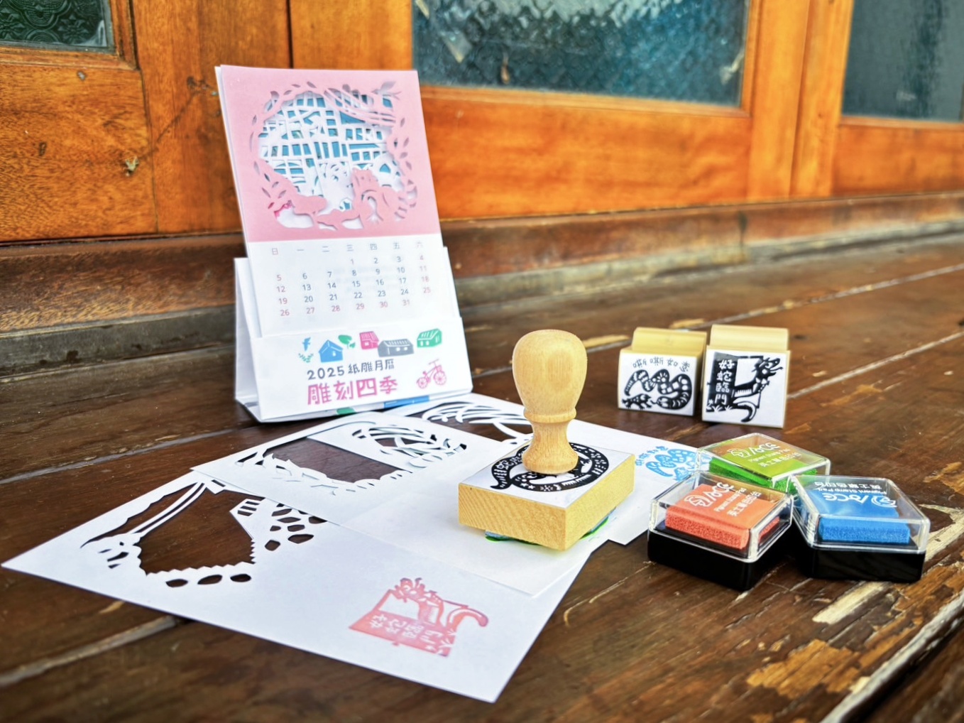 兌換完月曆可以選擇帶回家,自己買工具雕刻,或是跟我們的櫃檯工作人員說一下,我們也可以提供筆刀跟切割墊讓你在蟾蜍山煥民新村雕刻喔!!