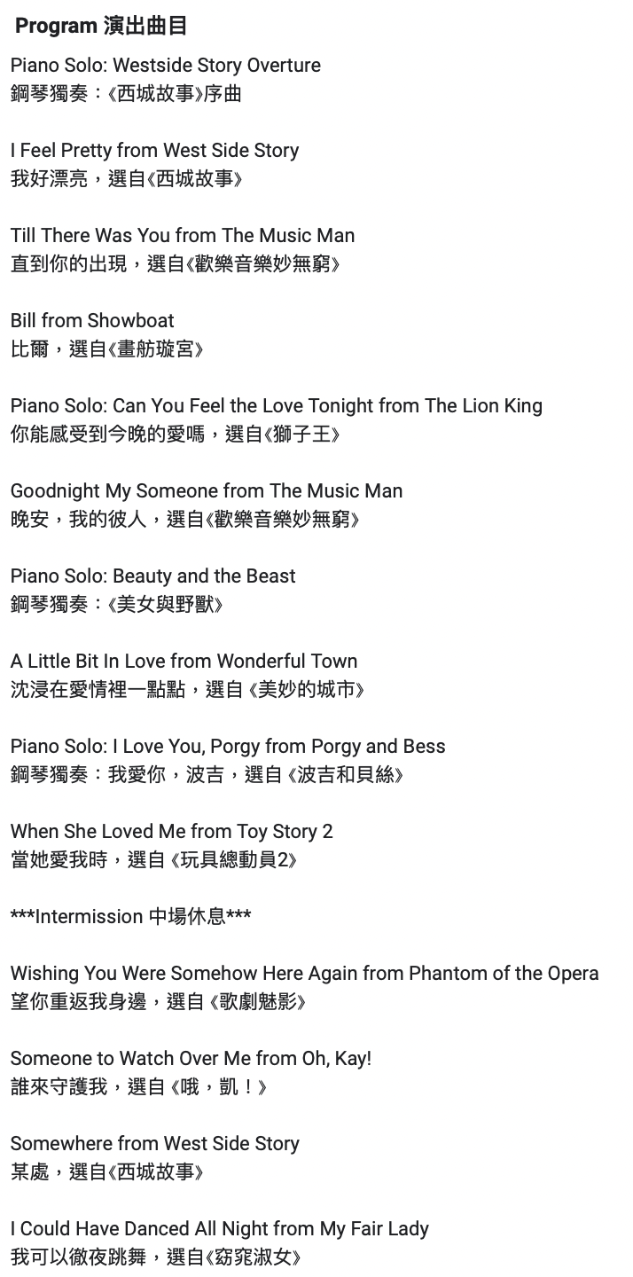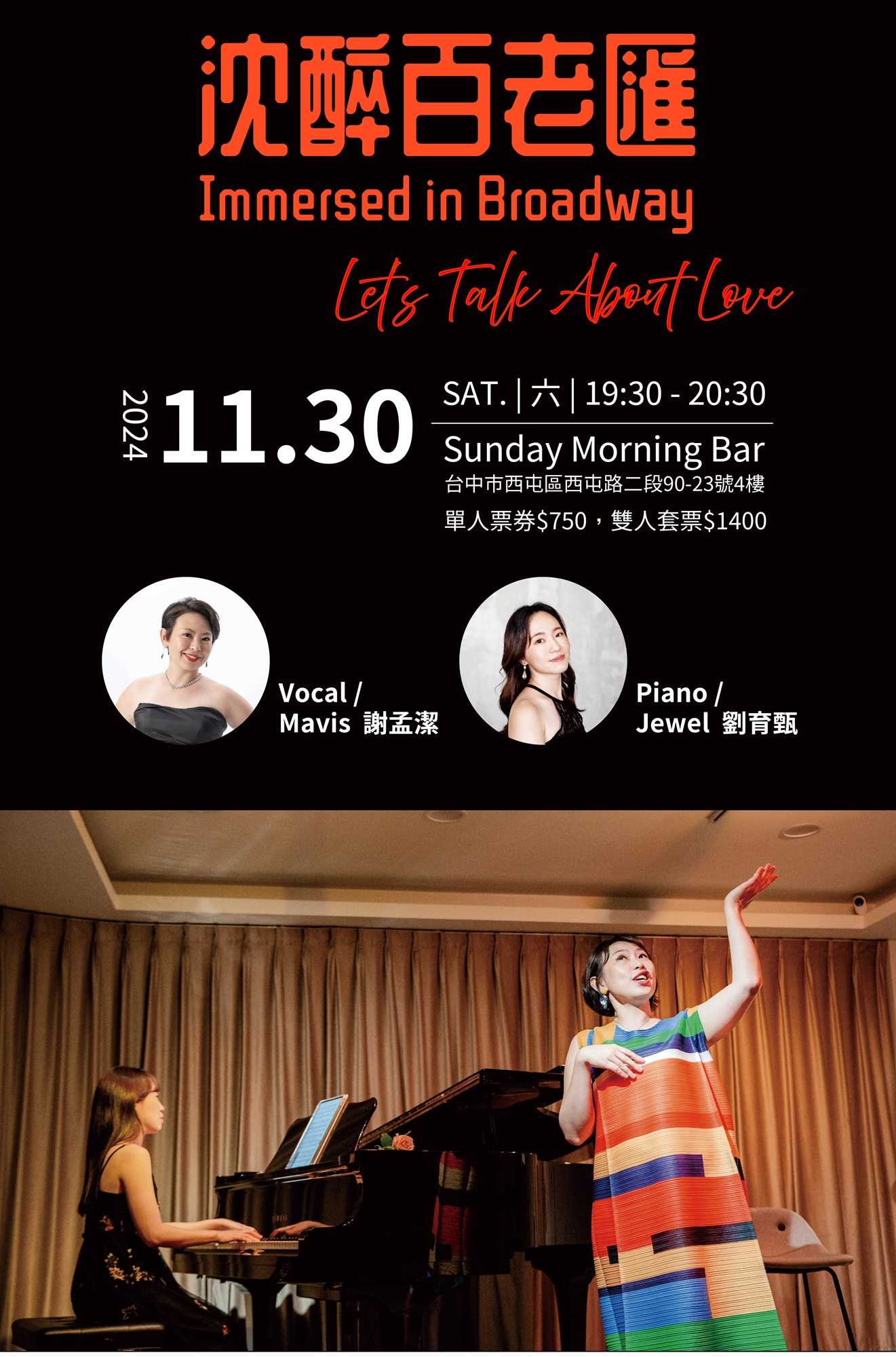 Sunday Morning Bar 邀請到聲樂家 Mavis 謝孟潔及鋼琴家 Jewel 劉育甄演出多首經典百老匯樂曲,