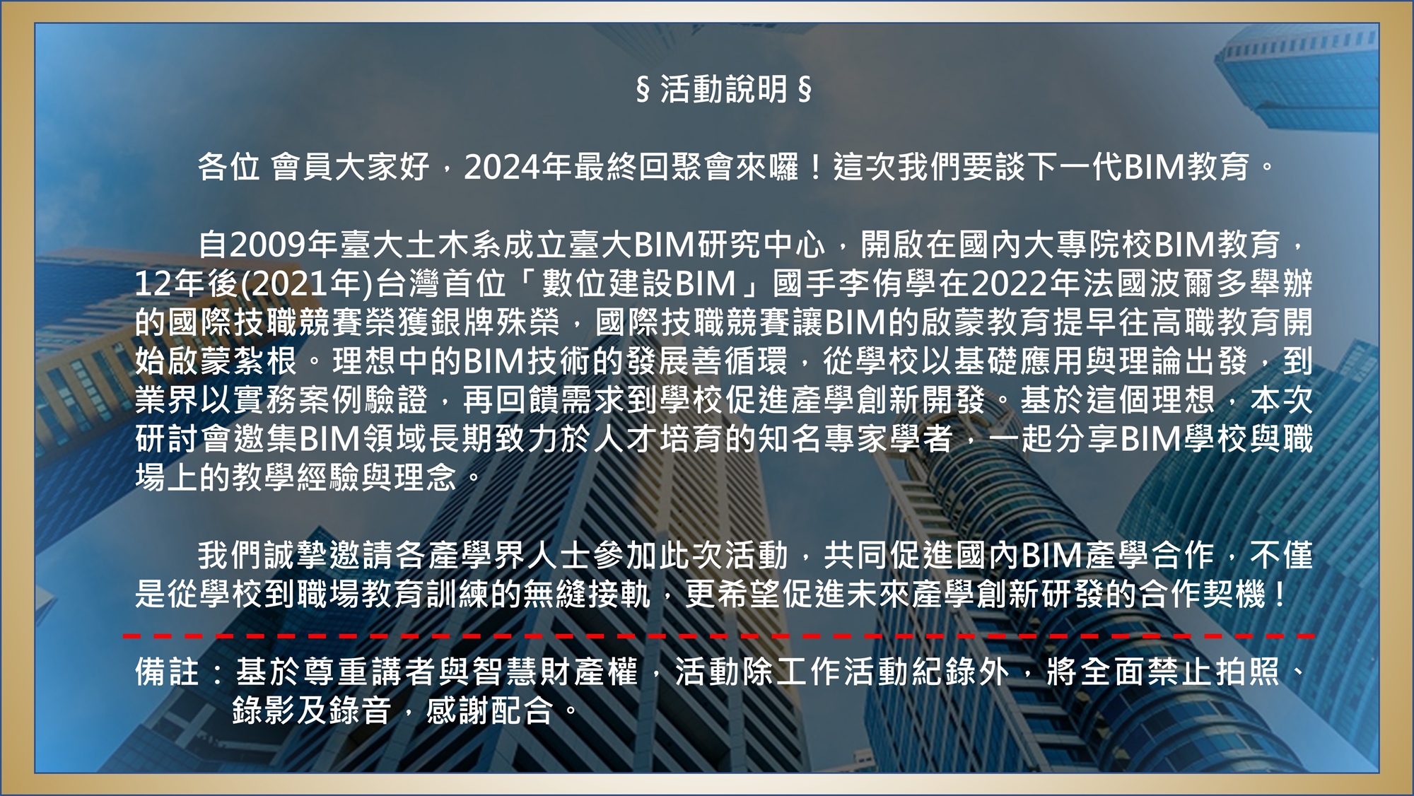 《下一代BIM教育》- TBIMA 台灣建築資訊模型協會2024年第八屆最終回會員聚會