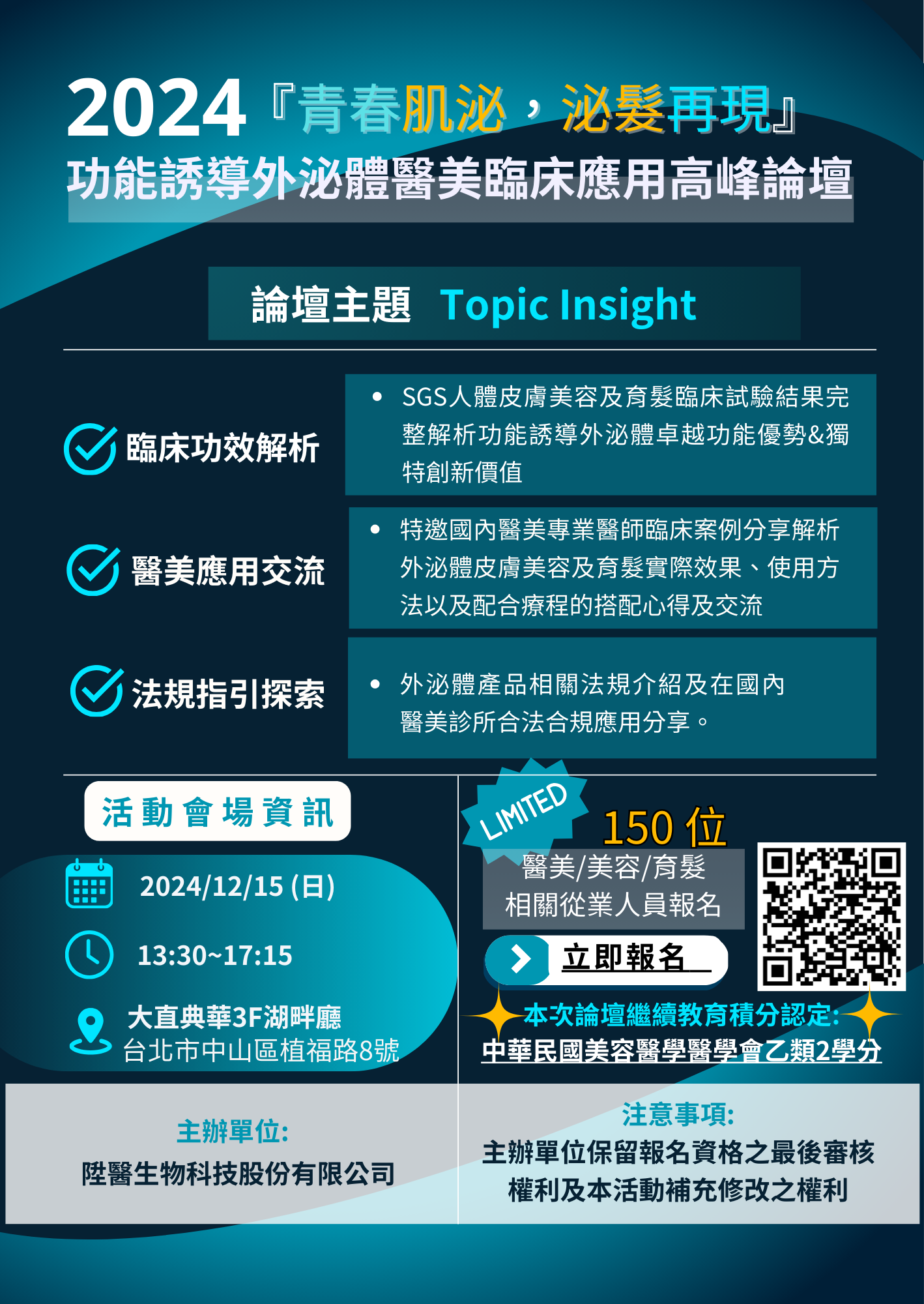 『青春肌泌,泌髮再現』功能誘導外泌體醫美臨床應用高峰論壇