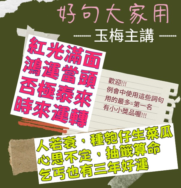 🎉語言講評:特別邀請演講會女神玉梅姐擔任,頂港有名聲,下港有出名,迅速增強會友語言掌握力。