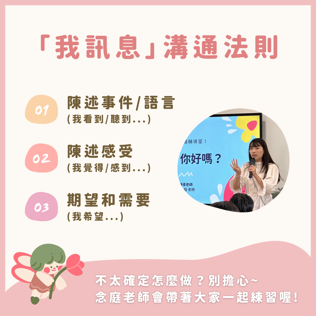 念庭老師還將帶大家練習「我訊息」的溝通方法