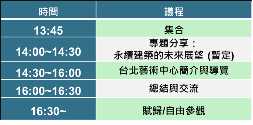 主題:探索綠建築美學與永續創新--台北表演藝術中心參訪活動