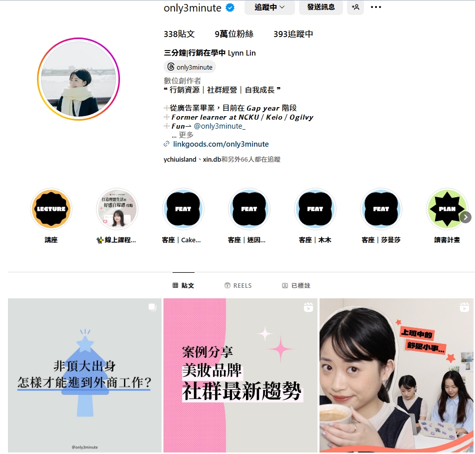 講師:Lynn (IG:「三分鐘|行銷在學中」主理人)