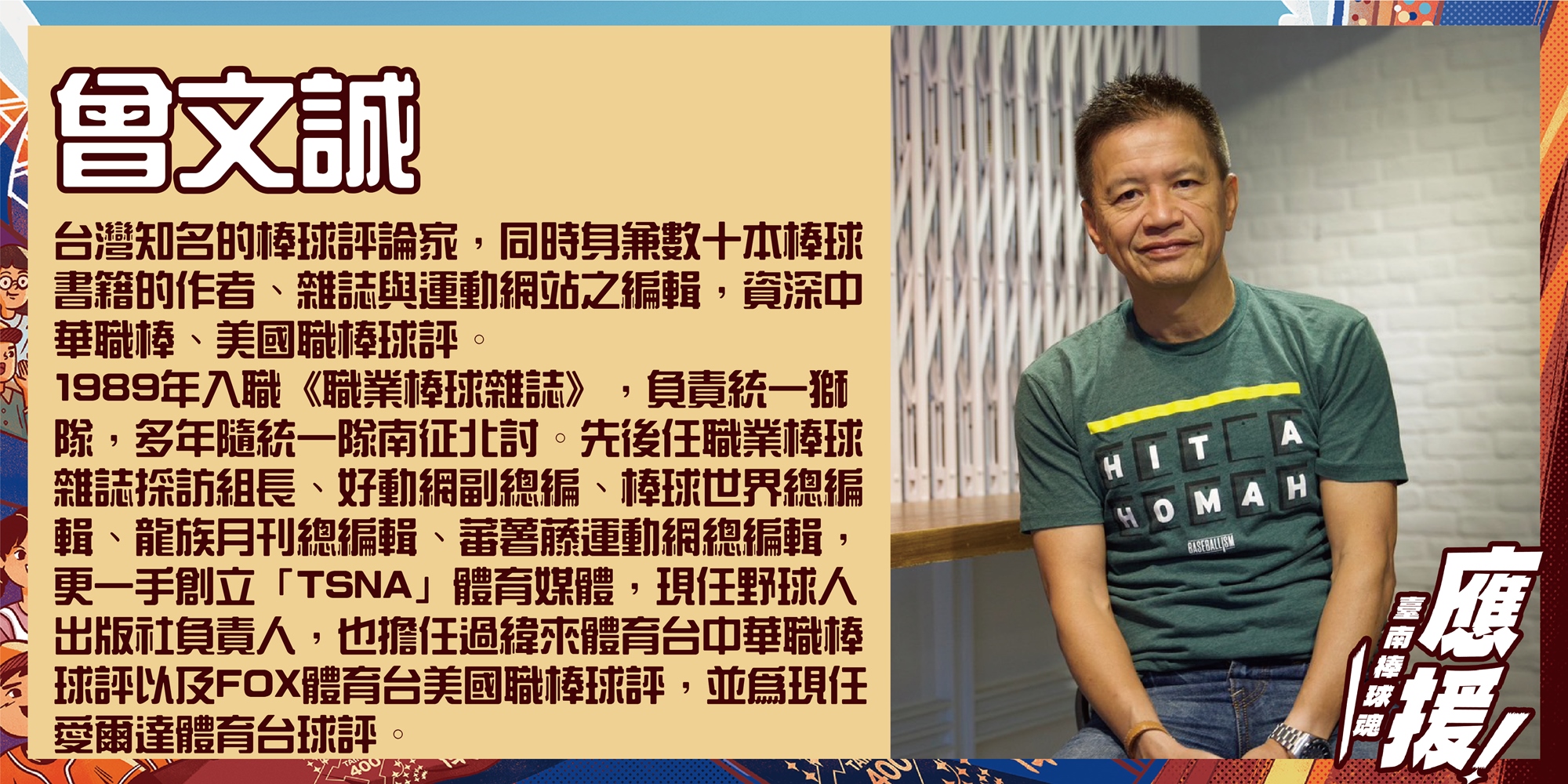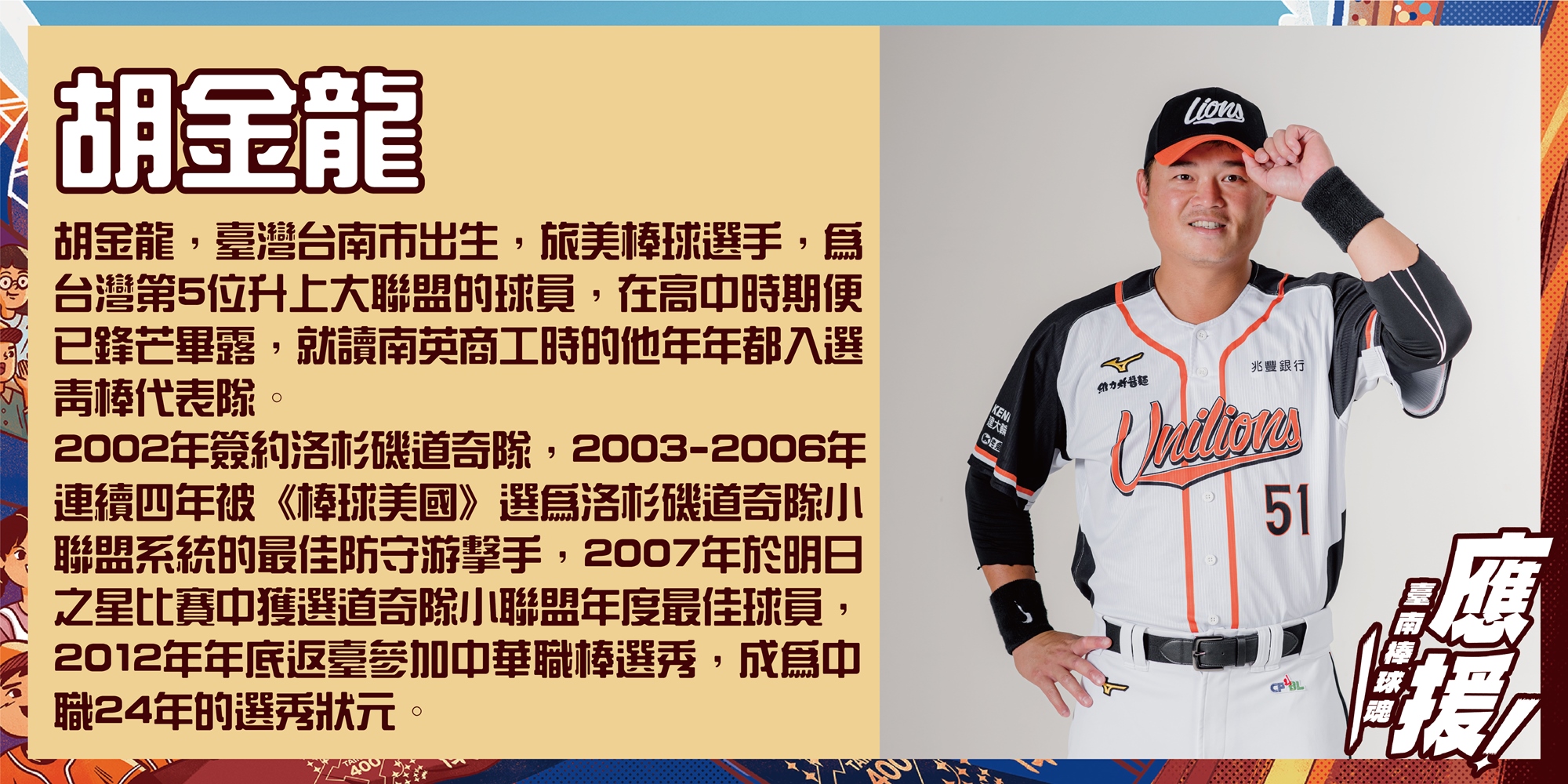配合「應援!臺南棒球魂」特展辦理棒球名人講座,邀請出生於臺南的職業棒球選手【胡金龍】與台灣知名的棒球評論家【曾文誠】進行對談交流,希望透過對談分享過去在棒球路上的心歷路程,以自身的經驗分享,讓大家更了解棒球這運動。