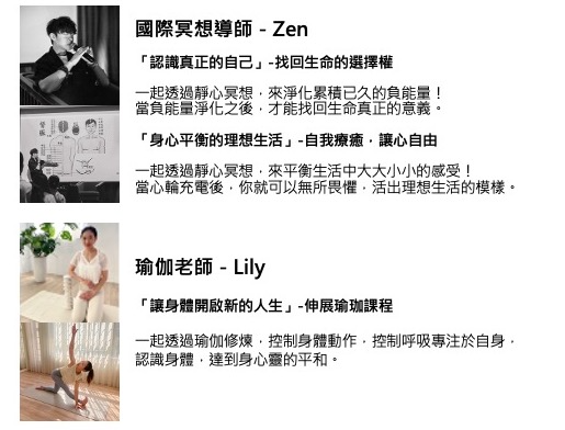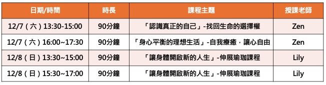 2.課程前請勿飽餐,請至少於一小時前用餐完畢。