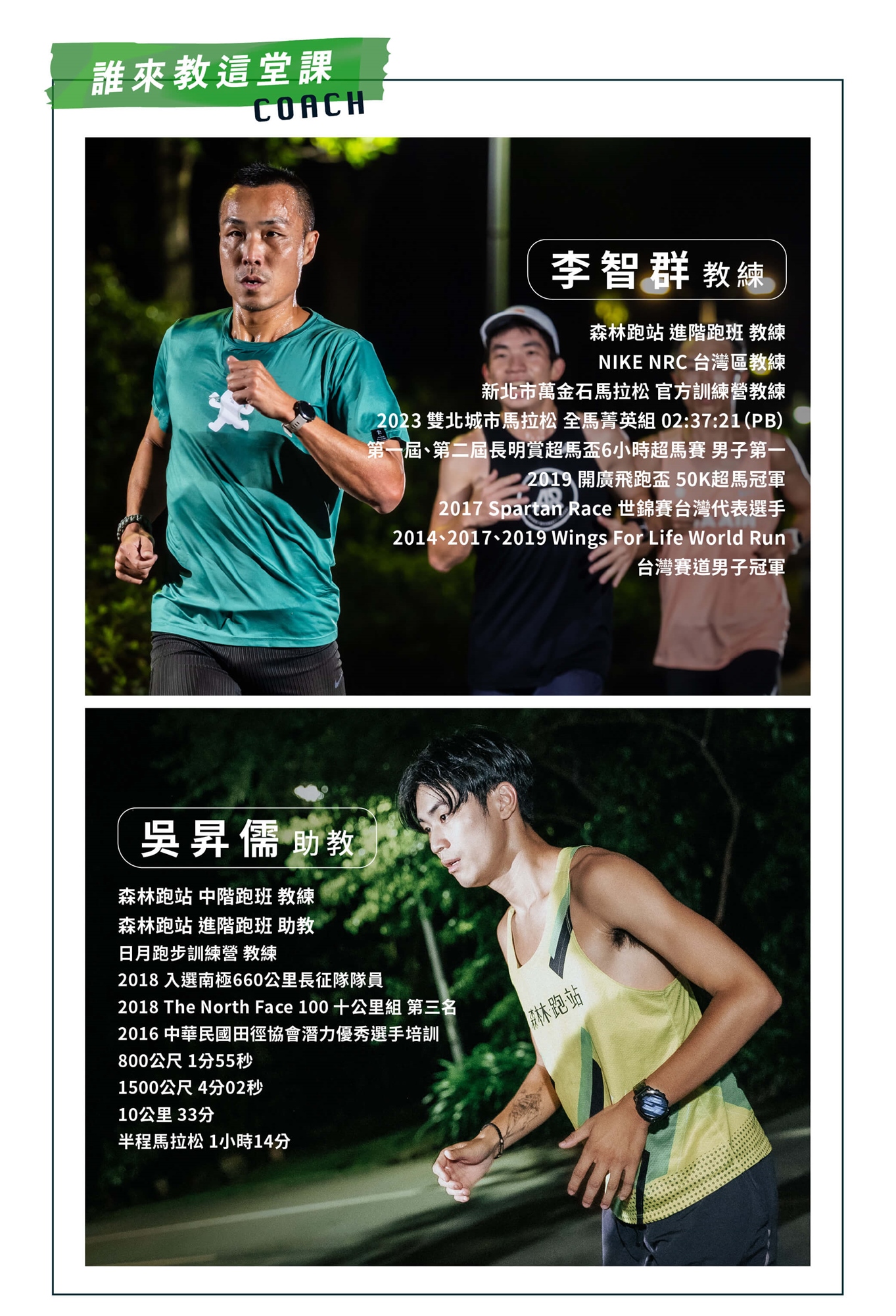 樂於傾聽學員、與學員分享經驗的李智群教練,注重每個練跑細節,會針對不同學生採取不同的課表與訓練,課程中親自參與陪跑並觀察學員訓練狀況,給予最立即、專屬的回饋,幫助你達到最好的成效。
